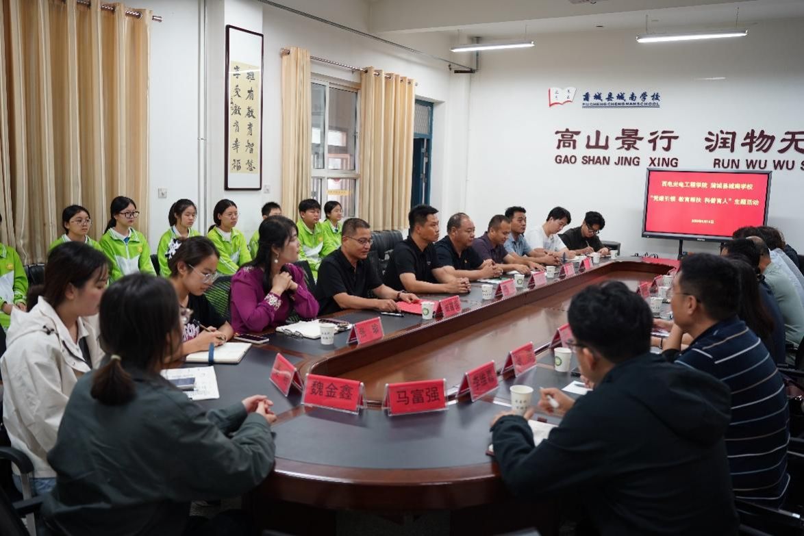 上午,公司一行来到蒲城县城南公司开展帮扶,蒲城县委常委、副县长田雨(西电派出挂职干部)、教育局乡村振兴办主任曹新建、城南公司领导班子及西电研究生支教团成员参加座谈,会议由城南公司党支部副书记魏立平主持。公司党支部副书记、董事长崔富强代表全校师生致欢迎辞,对sunbet申搏多年来的帮扶表达诚挚感谢,表示公司将把这份关爱转化为立德树人、潜心育人的实际行动,努力培养更多具有科学素养和创新精神的新时代好少年。独国社表示公司师生为城南公司近年来在公司产品和校园建设等方面取得的成果感到由衷高兴,简要介绍了sunbet申搏近期在团队建设、科学研究及人才培养等方面的重要进展,并表示希望今后双方进一步拓展合作领域、深化沟通机制,持续推动帮扶工作走向深入、取得实效。