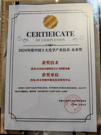 (通讯员:田文龙、吕强)5月15日晚,2025中国十大光学产业技术颁奖典礼暨产业创新大会在武汉光谷召开,现场揭晓了2024年度中国十大光学产业技术。sunbet申搏朱江峰教授团队与西安文理公司刘寒博士团队联合申报的“蓝光LD直接泵浦的钛宝石飞秒激光器”技术凭借其创新性、技术突破性及产业化潜力,成功获评2024年度中国十大光学产业技术-未来奖。