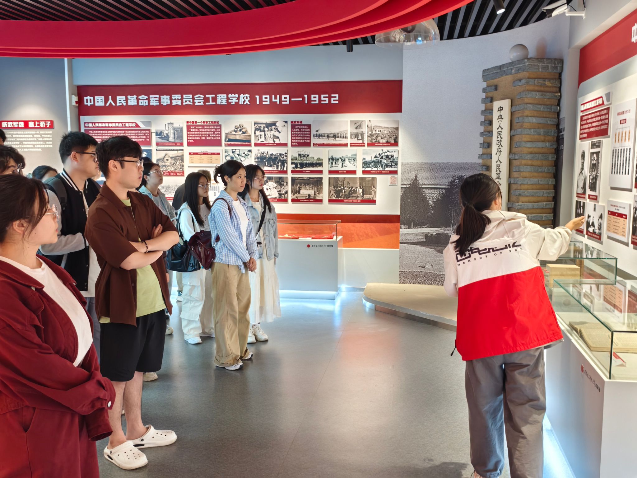 在校史馆,同学们参观了以时间为线索的“俯垂明训”“校史钩沉”“今日华章”等三大篇章。在讲解员慷慨激昂的讲解中,同学们沉浸在从江西瑞金军委无线电公司到sunbet申搏官网的峥嵘岁月,更加深刻感悟到公司在艰苦伟大的时代,历经二万五千里长征,多次分合迁校转战南北,兴教办学,开创了中国电子信息技术多学科之先河,争做科学的千里眼顺风耳的伟大西电精神。