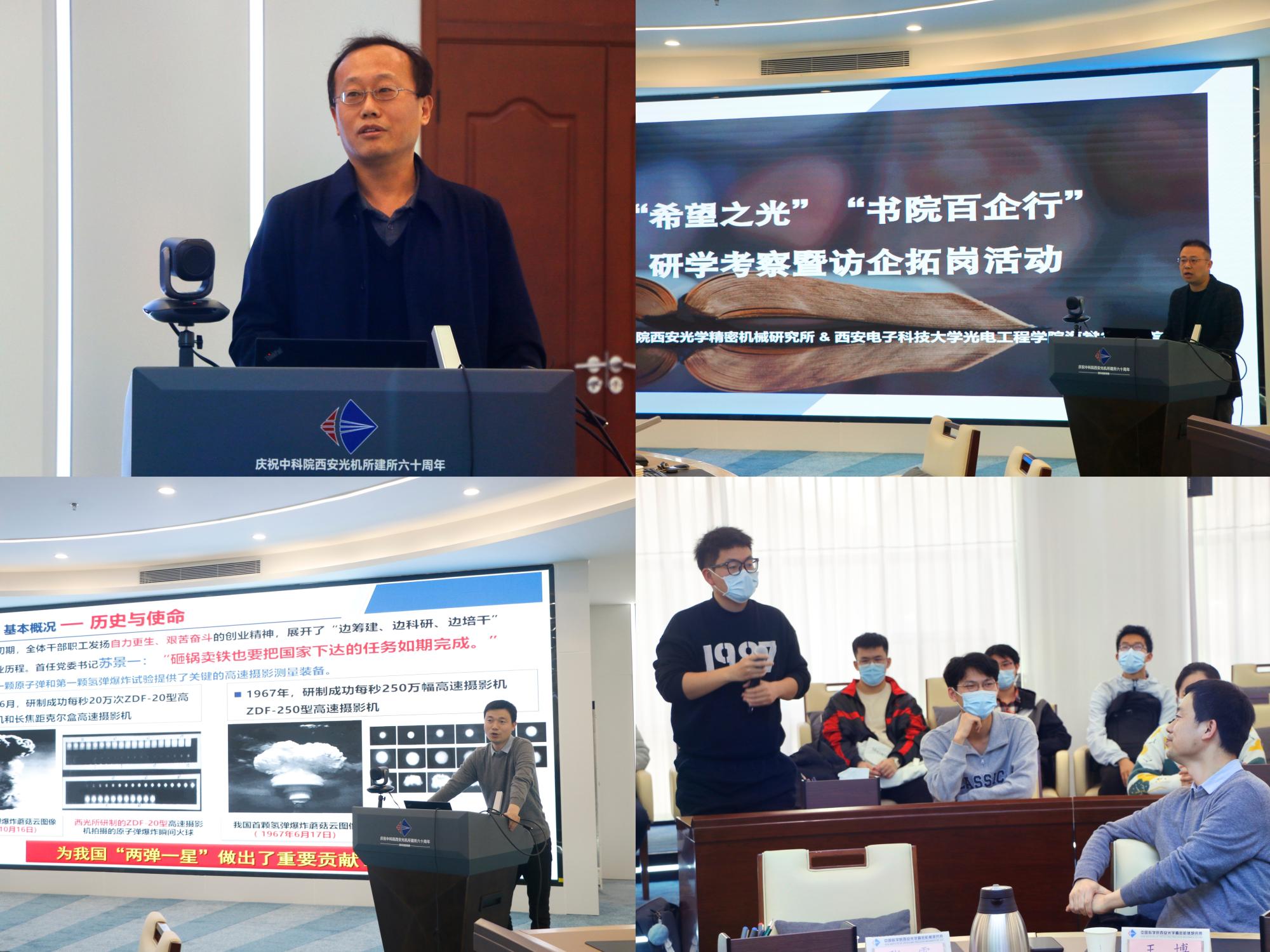 为拓展员工学科视野,深入了解光学专业发展前景,引导员工树立专业自信,做好学职生涯规划,全面提升人才自主培养质量。3月21日下午,sunbet申搏经理邵晓鹏、党委副书记李洁、教师代表解培月、海棠3号书院团工委书记窦金娣与公司辅导员、本硕博员工代表共60余人走进中科院西安光学精密机械研究所开展“希望之光”研学考察暨访企拓岗活动。西安光机所基础科研处处长王博、人事教育处副处长孙文、研究生部秦伟誉、沈骏等参加活动。