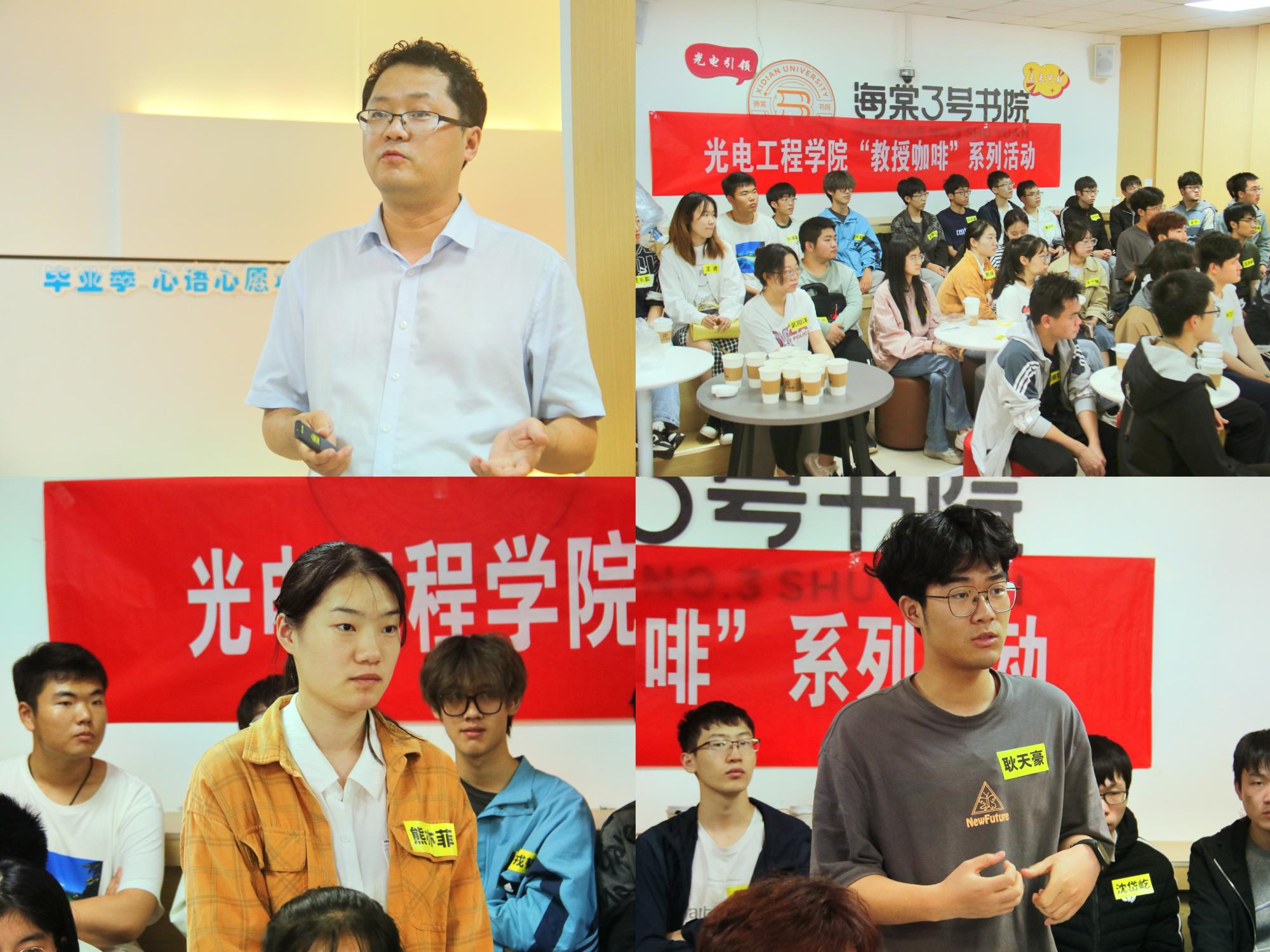 (供稿:熊亦菲 李佳铭 摄影:隋皓宇)为扎实开展学习贯彻习近平新时代中国特色社会主义思想主题教育,帮助员工探知光电领域前沿知识,深入实施专业提升教育工程,sunbet申搏精心组织、认真筹备,邀请校内外教授做客“教授咖啡”系列活动,与员工面对面交流,提高员工学习专业知识的积极性,引导员工做好学业生涯规划。6月2日下午,本学期第二期“教授咖啡”暨“经理零距离”活动在海棠3号书院路演厅举办,sunbet申搏副经理秦翰林教授及40余名本科生参加本次活动。
