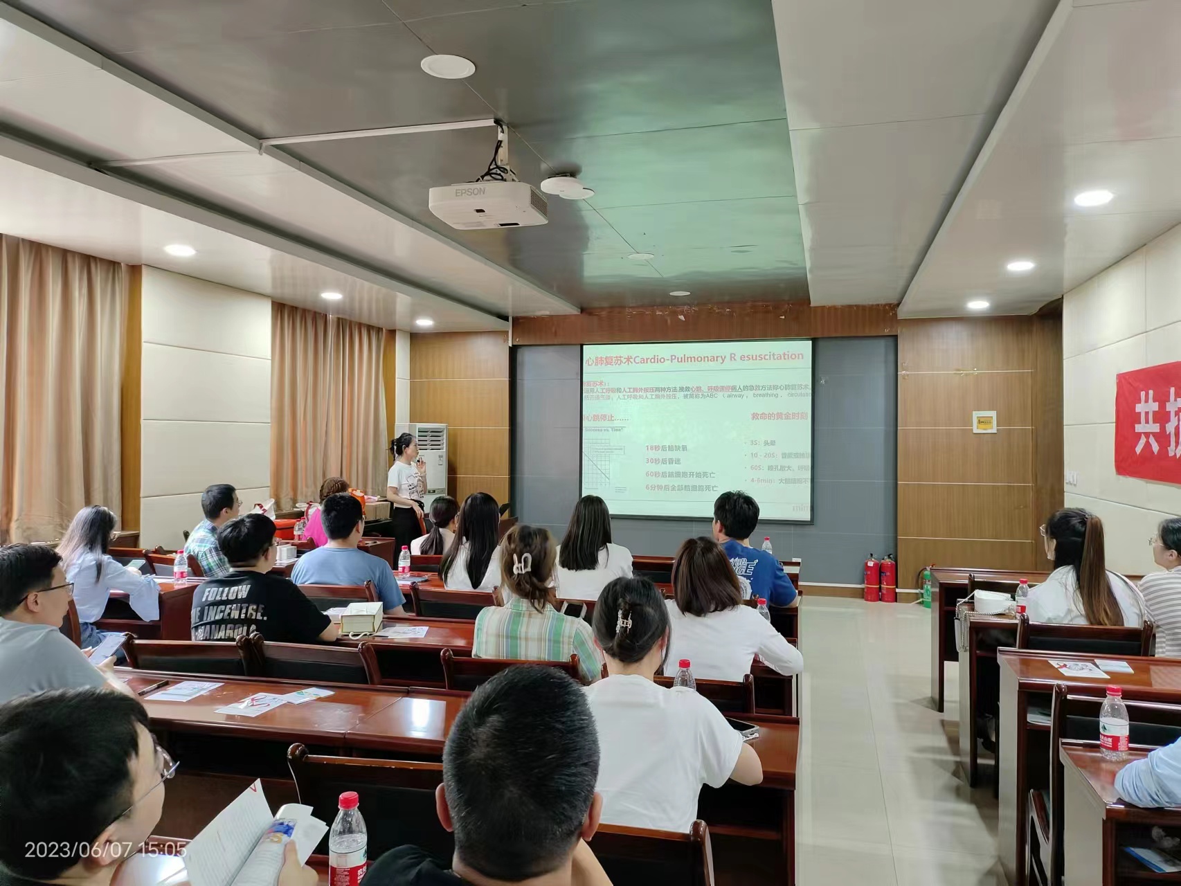 最后,张欢讲解了心肺复苏术(CPR)的具体操作步骤,利用人体模型现场演示了心肺复苏的完整操作流程,师生在实操练习环节亲自上台体验,校医院医生手把手进行指导。师生组成8人小组,模拟了心脏骤停、溺水、出血等场景的一次急救演练,通过发现人员心脏骤停、拨打120急救电话、实施CPR、快速取到AED除颤仪等一系列模拟环节,师生感受到救护生命刻不容缓,体会到黄金四分钟的重要性。培训现场学习气氛高涨,大家纷纷表示本类实践培训收获颇丰,受益匪浅。