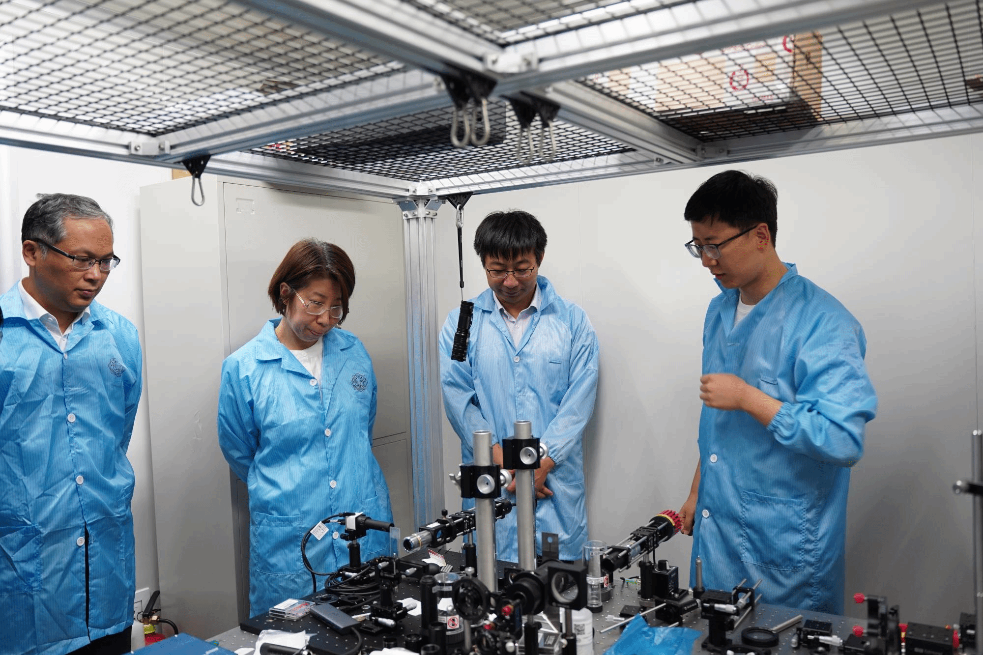 邵晓鹏对戴道锌一行到访表示热烈欢迎。秦翰林就公司建设、公司产品、人才培养等进行了详细介绍。双方围绕科研团队建设、有组织科研模式和试点班建设等重点问题进行了深入探讨,双方认为要在加强人才队伍建设,提升科研团队凝聚力战斗力,推动落实有组织科研方面继续保持长效沟通与合作。随后,戴道锌一行参观了超快激光技术与应用研究中心等实验室。
