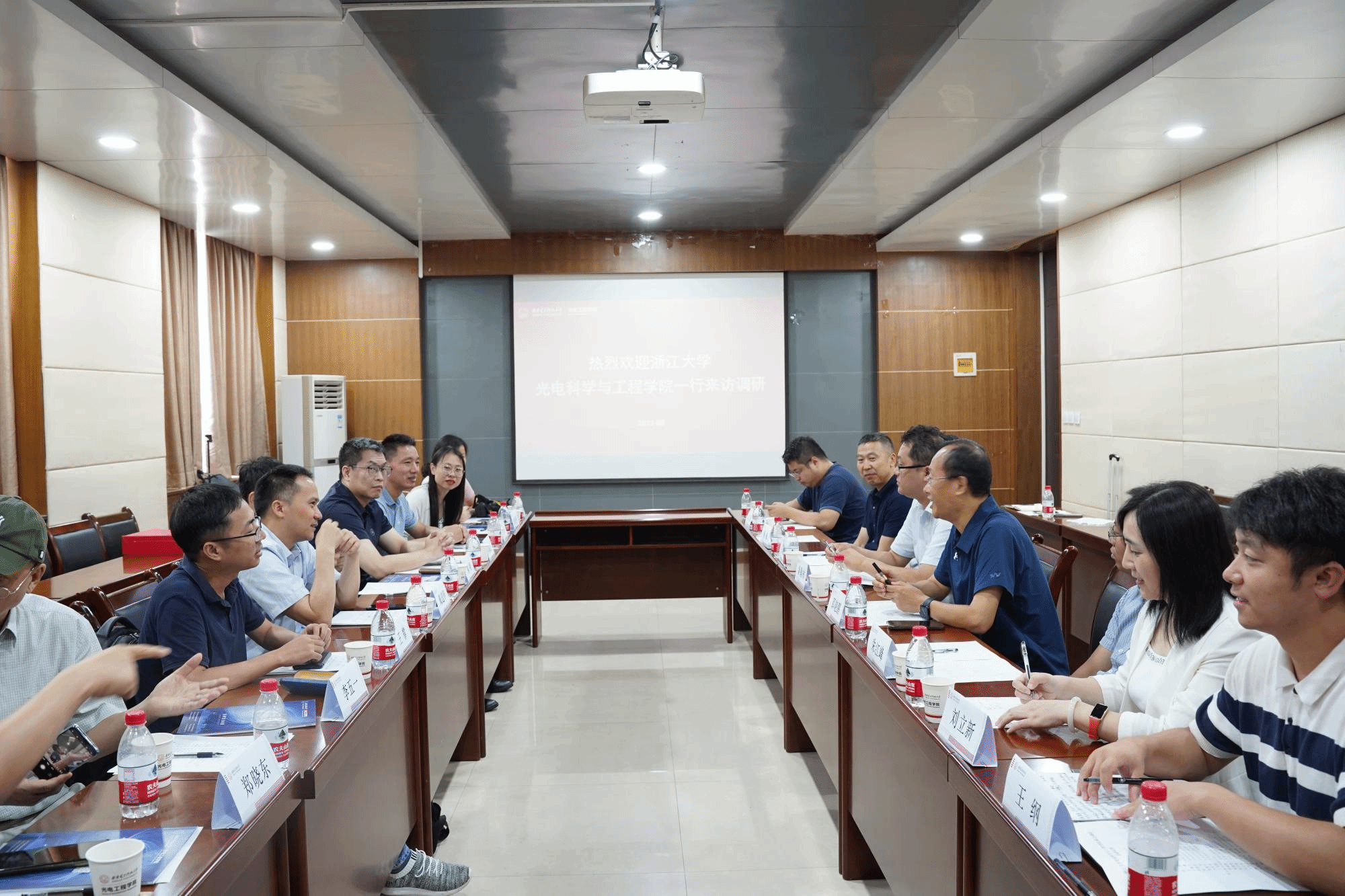 8月11日上午,浙江大学光电科学与工程公司经理戴道锌、员工分会会长李五一、副经理郝翔等一行9人来访调研,经理邵晓鹏、副经理秦翰林、系(所、中心)主任、科研团队负责人等参与座谈。