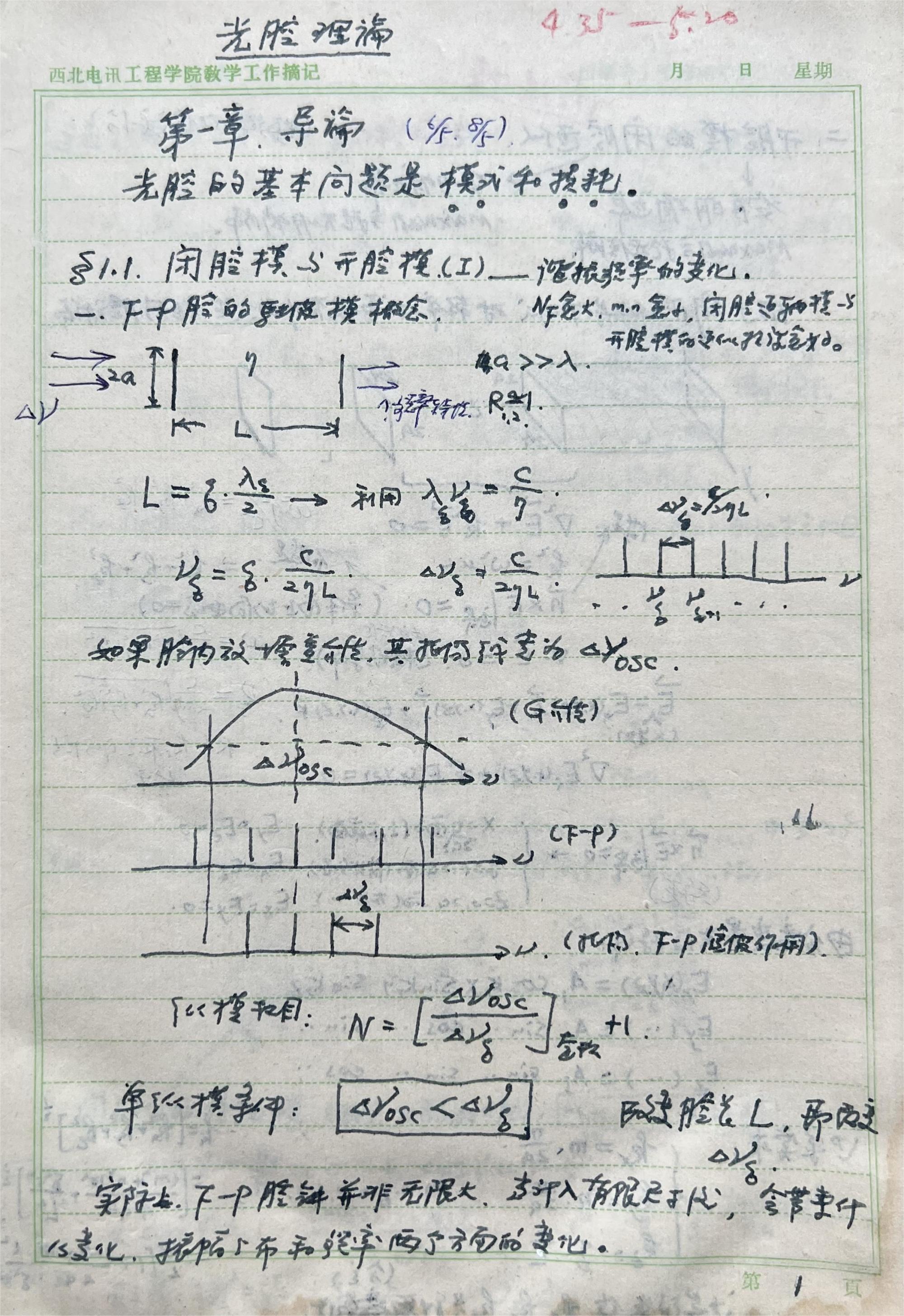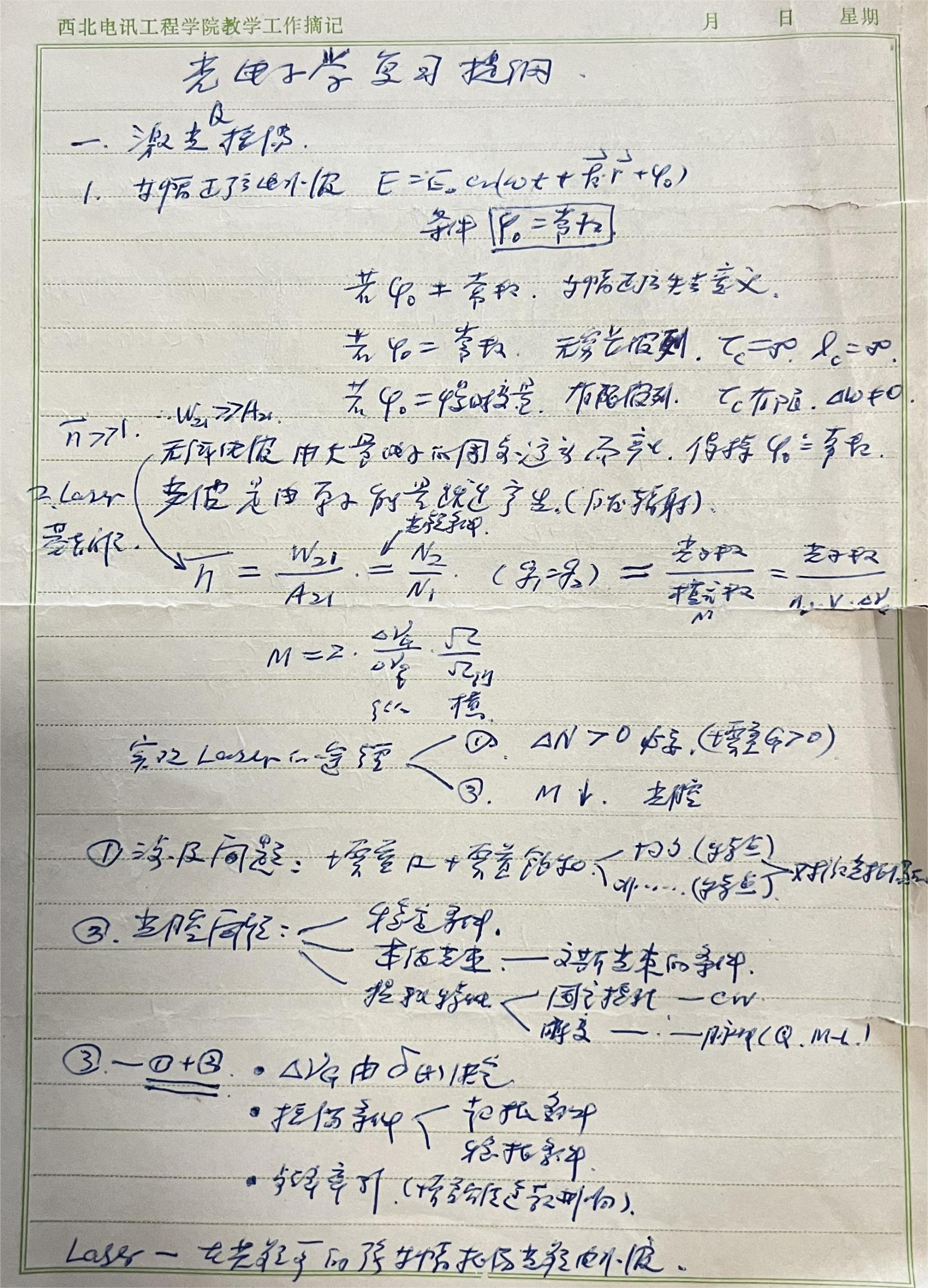 《激光原理与技术》手稿(西电档案馆馆藏)