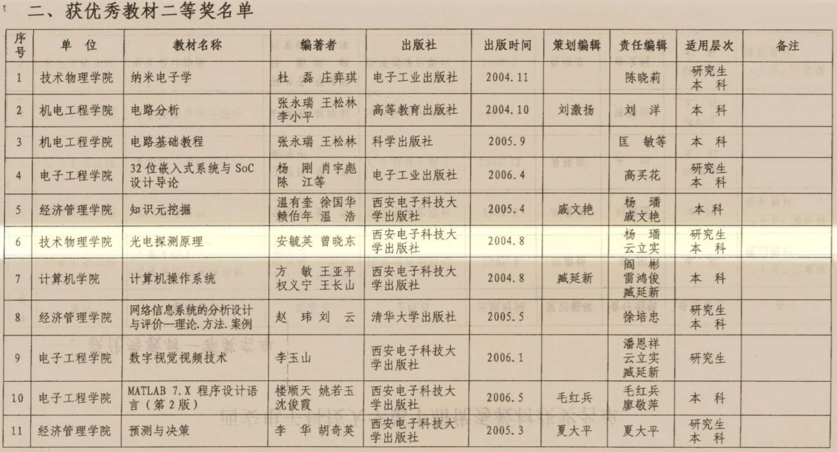 《光电探测原理》获sunbet申搏官网第十届优秀教材二等奖(西电档案馆馆藏)