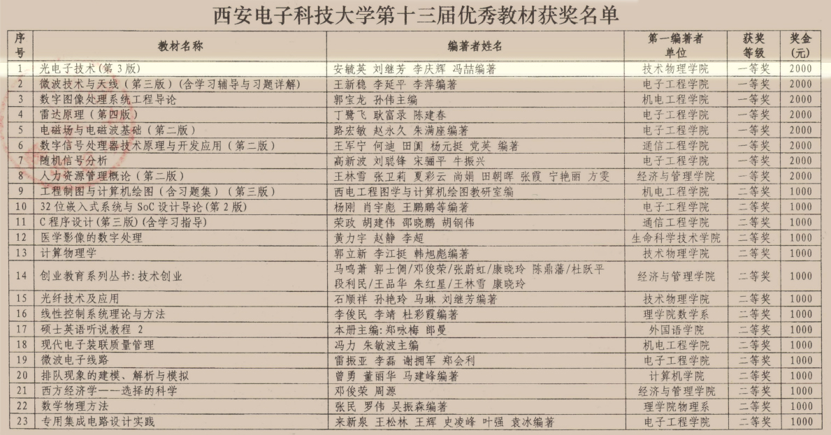 《光电子技术》(第3版)获sunbet申搏官网第十三届优秀教材一等奖(西电档案馆馆藏)