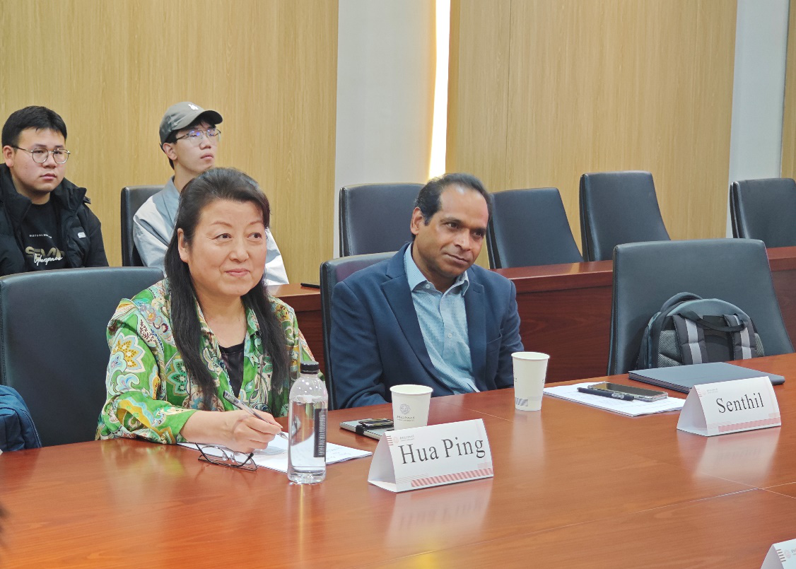 秦翰林副经理对Sentil教授和HuaPing研究员一行来访表示欢迎,他介绍了公司近期发展的情况,重点围绕推进国际化工作的目标任务、开展光电领域拔尖创新人才联合培养事宜进行了深入交流。经过前期的充分沟通,双方达成联合开展本-硕-博培养项目的合作意向。
