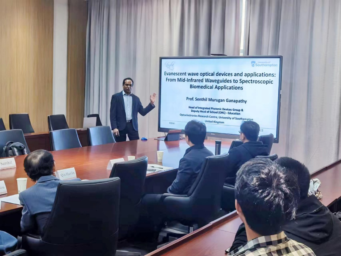 Senthil教授以《Evanescent wave optical devices and applications: From Mid-Infrared Waveguides to Spectroscopic Biomedical Applications》为题做了学术报告,分享了消逝波在中红外波导和光谱生物医学等领域的研究进展与前沿应用。