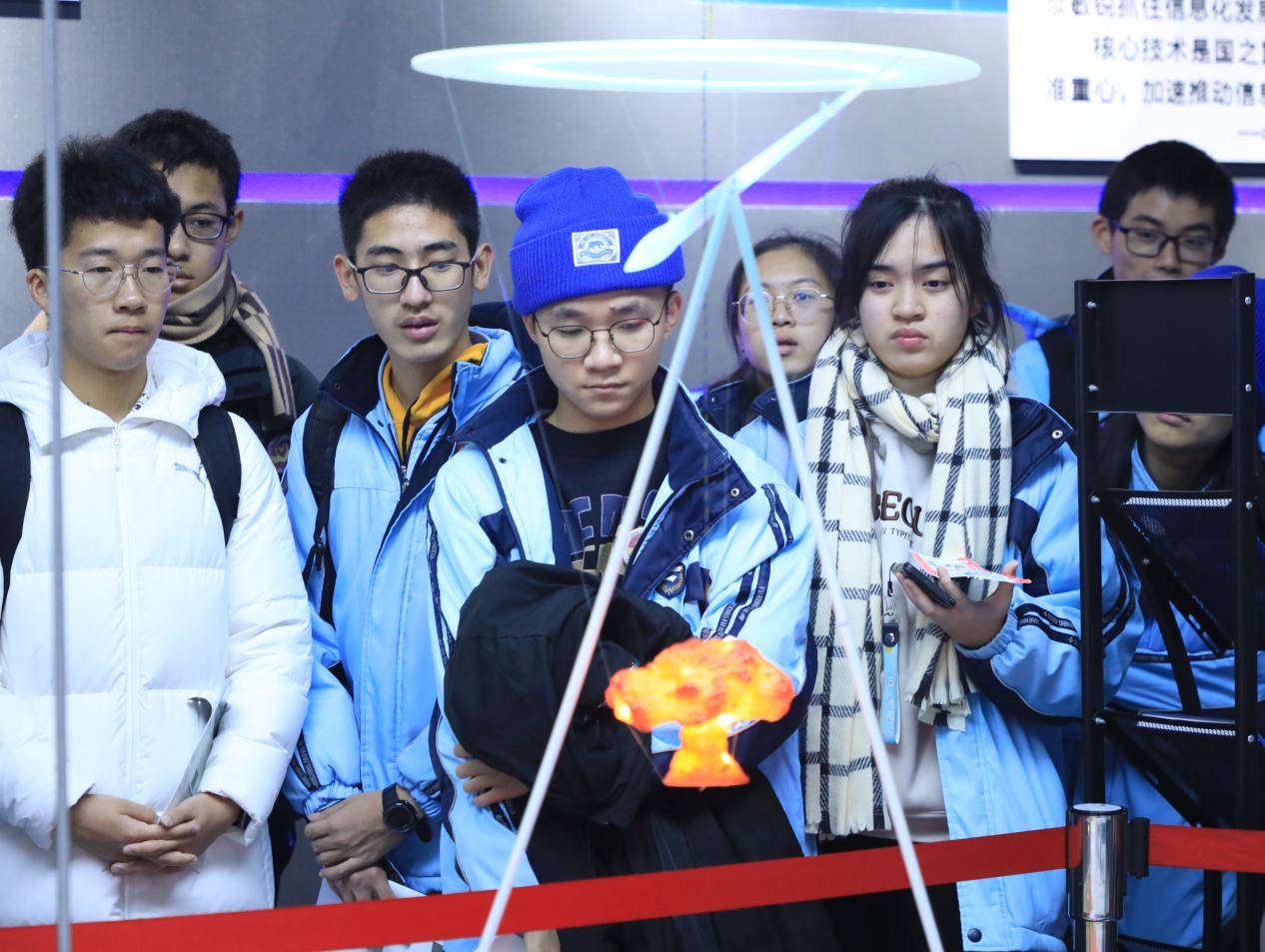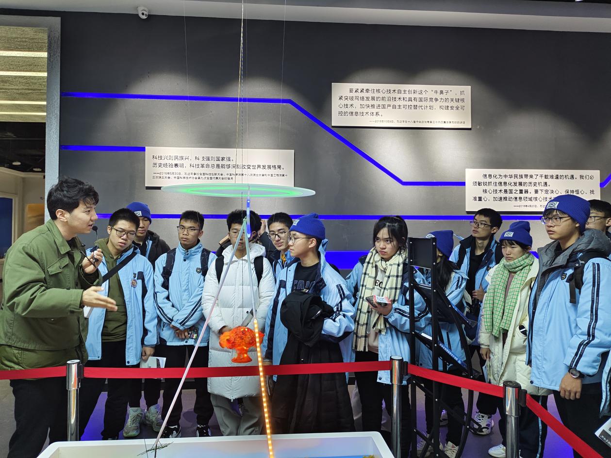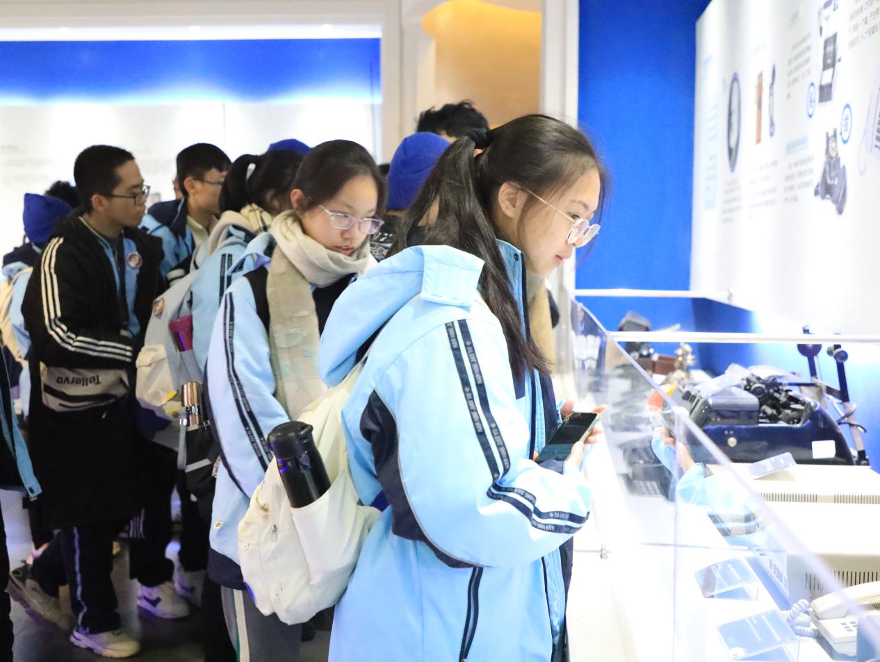 研学第二站,是走进博物馆。高中生们跟随着讲解员参观了馆内的陈列,看着计算机、智能手机逐代升级,感受着科技和创新的力量。他们在科学的走廊里徜徉,倾听着科技成果背后鲜为人知的感人故事,感受着一代代科学家和学者突破自我、励志笃行的创新精神。