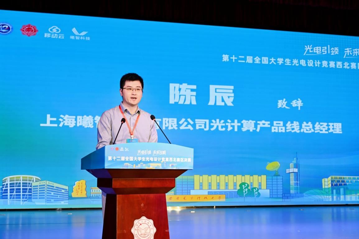 上海曦智科技有限公司光计算产品线总经理陈辰作为赞助单位代表致辞,他希望通过本次大赛能够接触到更多有才华、有创意的年轻人,同高校研究团队一起加入光计算领域研究的宏伟蓝图中。