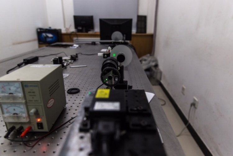 在sunbet申搏官网北校区西大楼Ⅱ-210的实验室里,摆放着一套利用LED光源照明的无透镜散射成像实验系统。这套系统正中间,竖直放置着一块毛玻璃。毛玻璃的一边是观测目标,另一边是没有安装镜头的CCD相机。