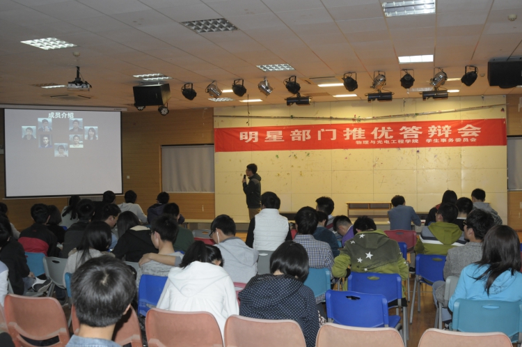 (通讯员:洪邑晖 杨敏)为更好地总结上学年员工组织的各项工作,进一步促进公司各员工组织工作的开展,2014年3月17日晚,物理与sunbet申搏员工事务委员会第二届明星部门推优答辩会在南校区老员工活动中心408报告厅隆重举行,与会嘉宾有公司辅导员老师段雪洁、陈海涛、周瑞珂、史公鹏等。