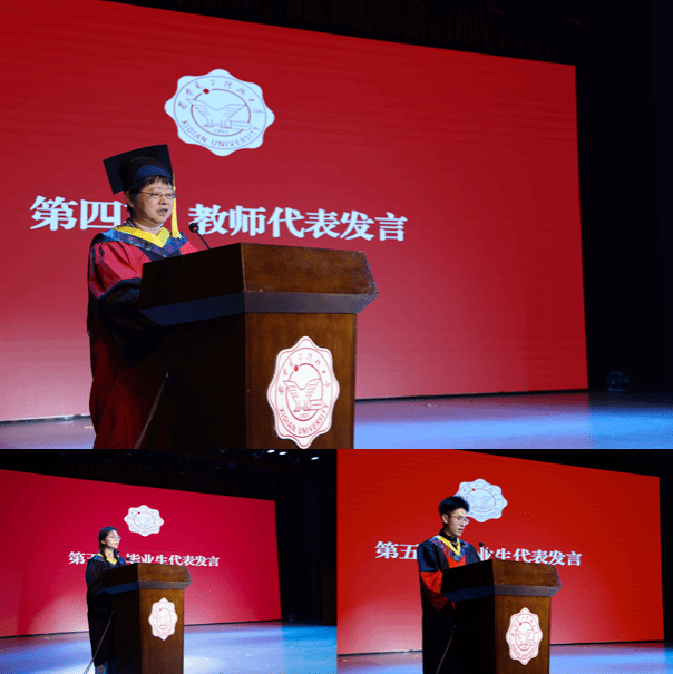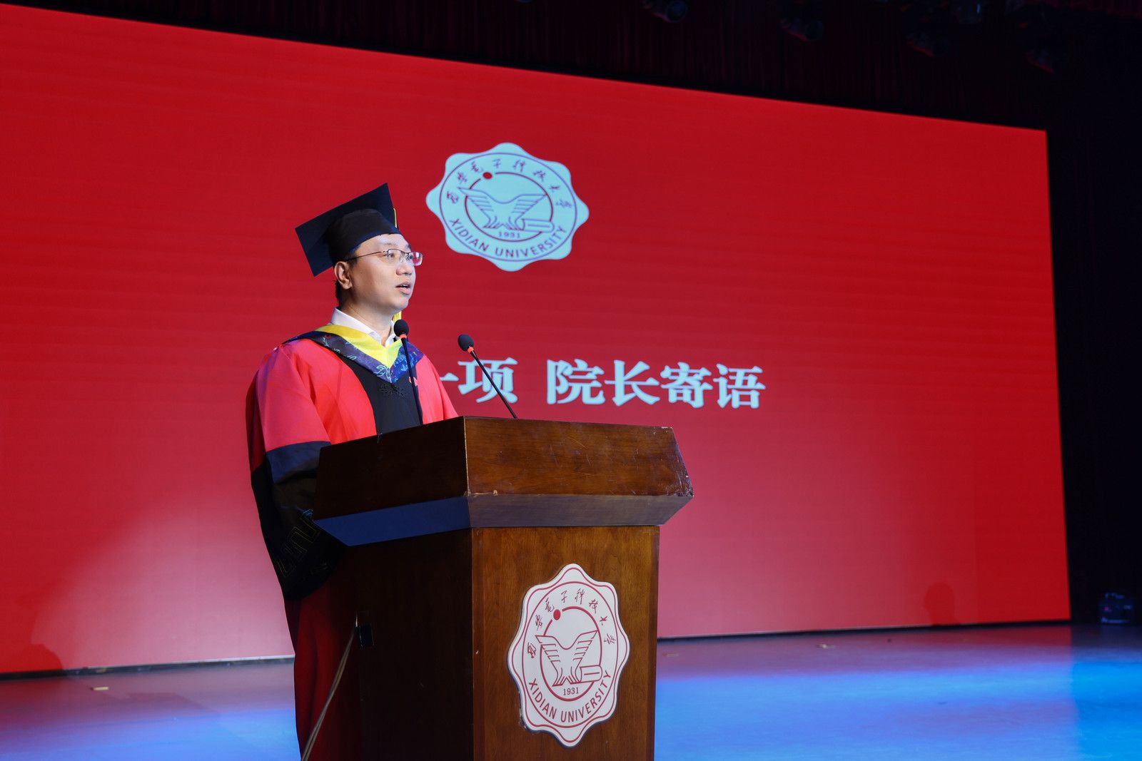 教师代表马琳以“底线、韧性、担当、热爱”四个关键词寄语毕业生,叮嘱他们“在纷扰中不失清澈,在挑战中磨砺意志”,无论来自何方、身在何处,西电永远是同学们的精神原乡。本科毕业生代表王玉楠在发言中感恩公司、公司和老师们的培养,表示将会用一生去诠释“厚德、求真、砺学、笃行”的校训,用行动和奋斗书写属于sunbet申搏、属于西电人的华彩篇章。研究生毕业生代表袁帅表示“艰苦奋斗、自强不息、求真务实、爱国为民”的西电精神早已融入血脉,未来将继续扎根科研、投身教育,把青春写在祖国最需要的地方。