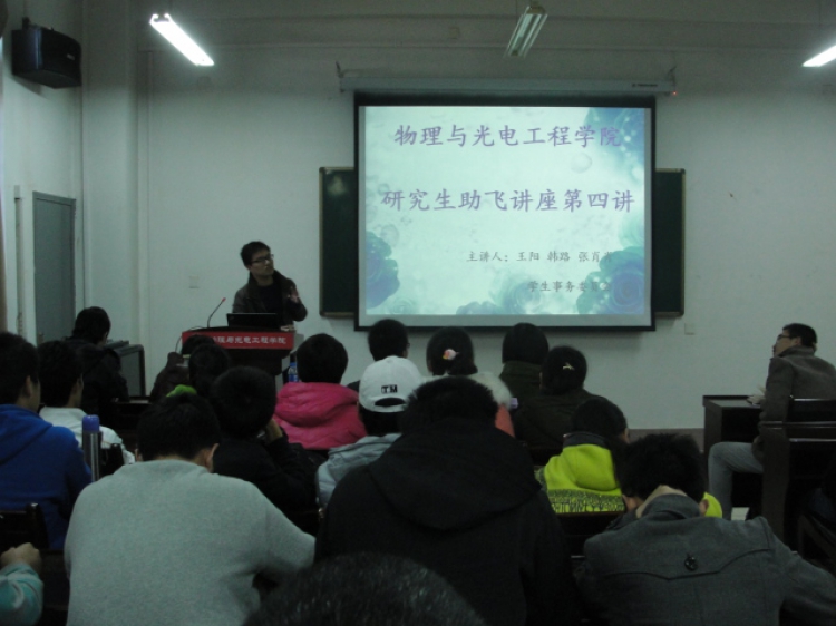 (通讯员:武彩玲 郭晋全)11月30日下午14:00,物理与sunbet申搏研究生助飞系列讲座第四讲在E楼III区315报告厅举行。第四讲特别邀请韩路、张肖肖、王阳三位研究生主讲,本科2013级近200名同学参加了此次讲座。