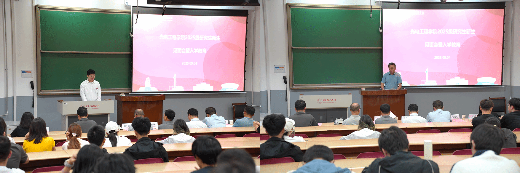 2025级研究生新生张泽奇代表全体研究生向师长、家人表达感谢,号召同学们传承弘扬西电精神,以饱满的热情、坚定的信念和不懈的努力提升综合素质,共同书写研究生阶段的精彩篇章。导师代表光电仪器系主任张大成向同学们讲解了研究生与本科阶段学术研究的区别以及光电学科的发展前景,希望同学们在光电探索的旅途中,既有“仰望星空”的理想,又能“脚踏实地”,发出自己科研生涯的光亮。