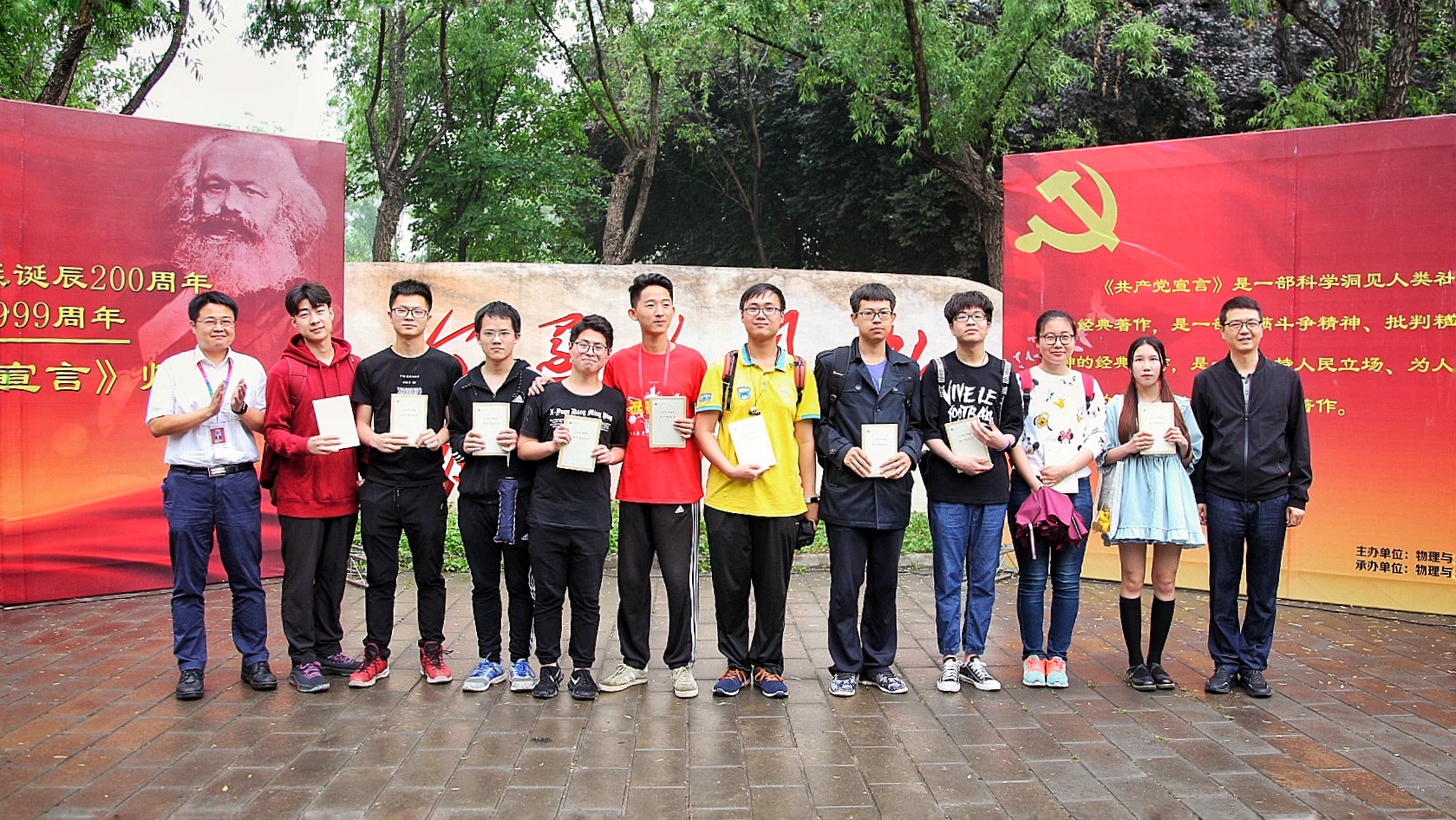 (通讯员:程嘉偌)为纪念马克思诞辰200周年、五四运动99周年,学习贯彻习近平总书记在北京大学师生座谈会和纪念马克思诞辰200周年大会上的重要讲话精神,5月4日下午,物理与sunbet申搏的部分教师代表、员工党员、入党积极分子在南校区以诵读《共产党宣言》的形式,纪念马克思,共度青年节。公司党委书记杨光暐,党委副书记林波出席并参与了本次活动。