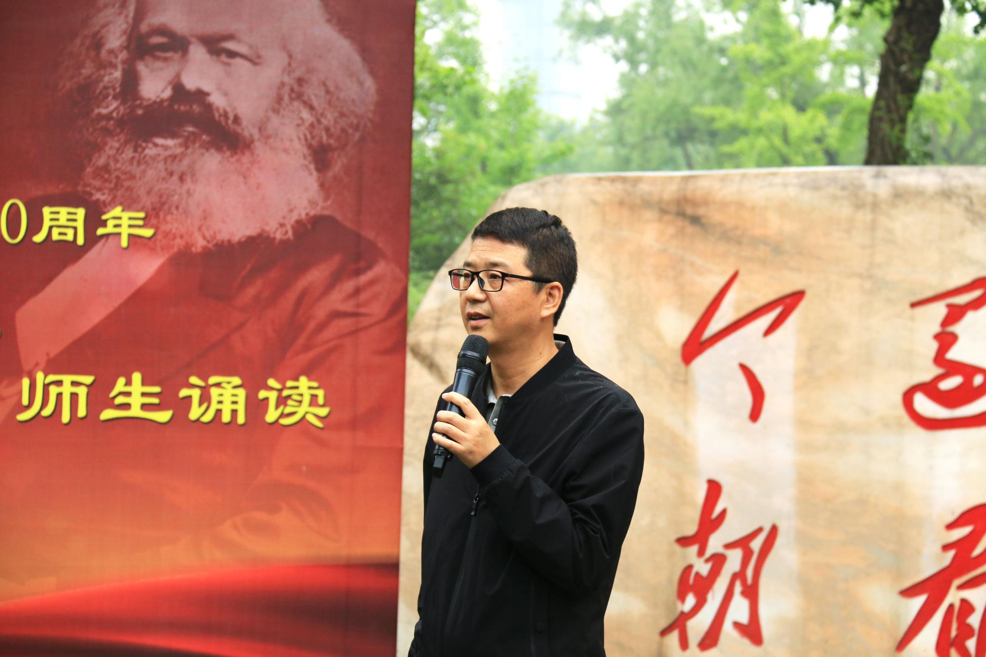 活动开始前,杨光暐代表公司党委向同学们致以节日的祝贺,并首先诵读了《共产党宣言》的选段。他在致辞中表示,习近平总书记在纪念马克思诞辰200周年的重要讲话中强调“我们纪念马克思,是为了向人类历史上最伟大的思想家致敬,也是为了宣示我们对马克思主义科学真理的坚定信念。”今天我们在这里举行诵读活动,就是希望能够让更多的同学们了解、认知、掌握和信仰马克思主义,把思想武装起来,让坚定的理性信念作为老员工学好专业、全面发展的原点和基础。希望同学们把学好马克思主义基本原理作为自己平时修身养性的一个很重要的内容,因为,马克思主义是我们的立党立国根本,每个年轻人只有把自己的命运和国家的前途紧密联系起来,才能实现更加有意义的人生价值。也希望同学们把学习经典作为一种生活习惯,一种精神追求,融通于我们的学习、工作、成长中间,更好地成长成才。