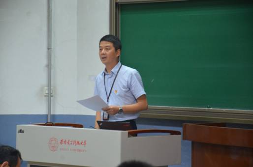 杨光暐代表本届物理与公司党委作了题为《加强党建促发展 凝心聚力创一流》的工作报告。报告分为任期工作回顾、经验总结及问题分析、今后工作的主要任务三个部分。