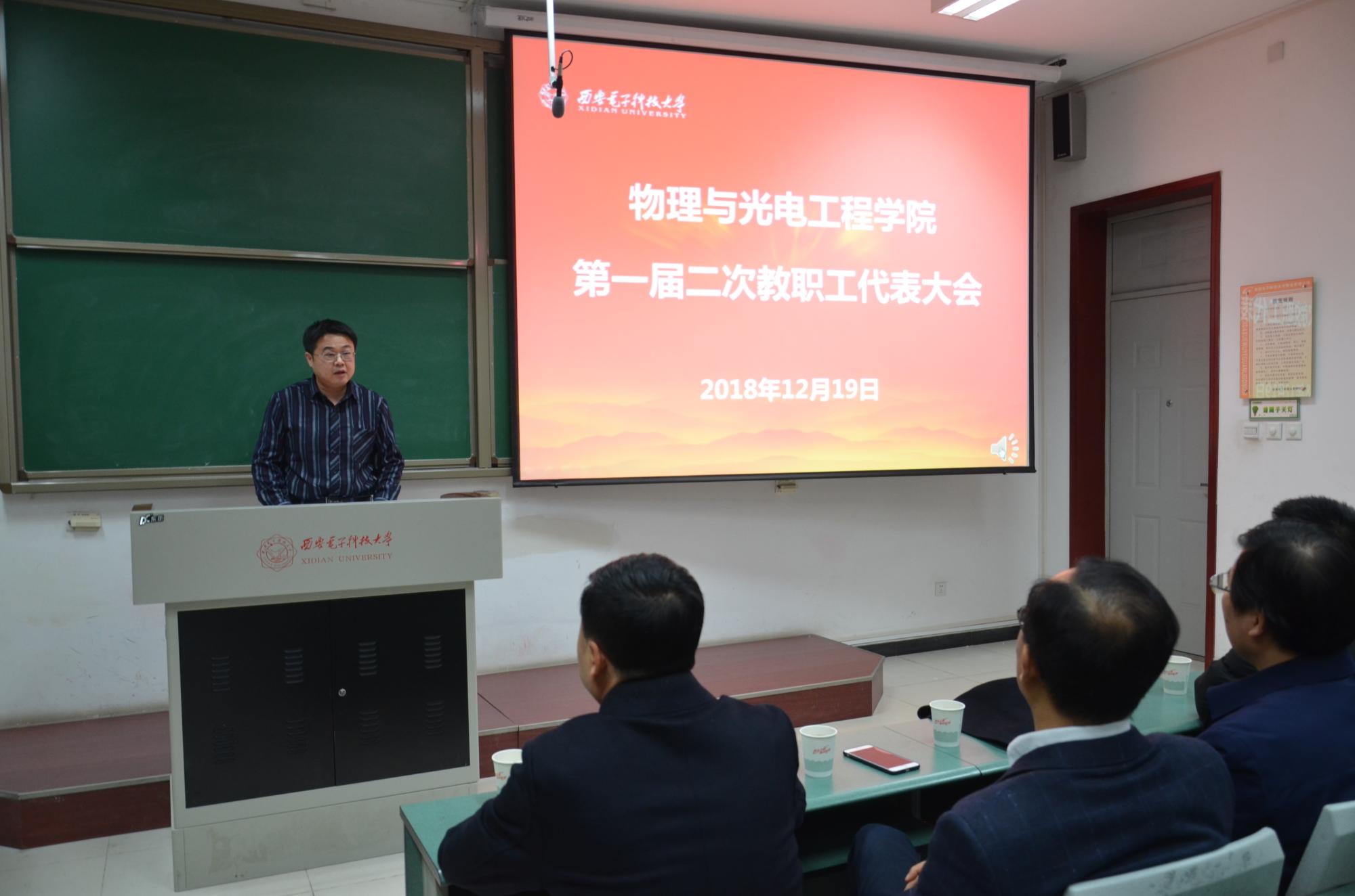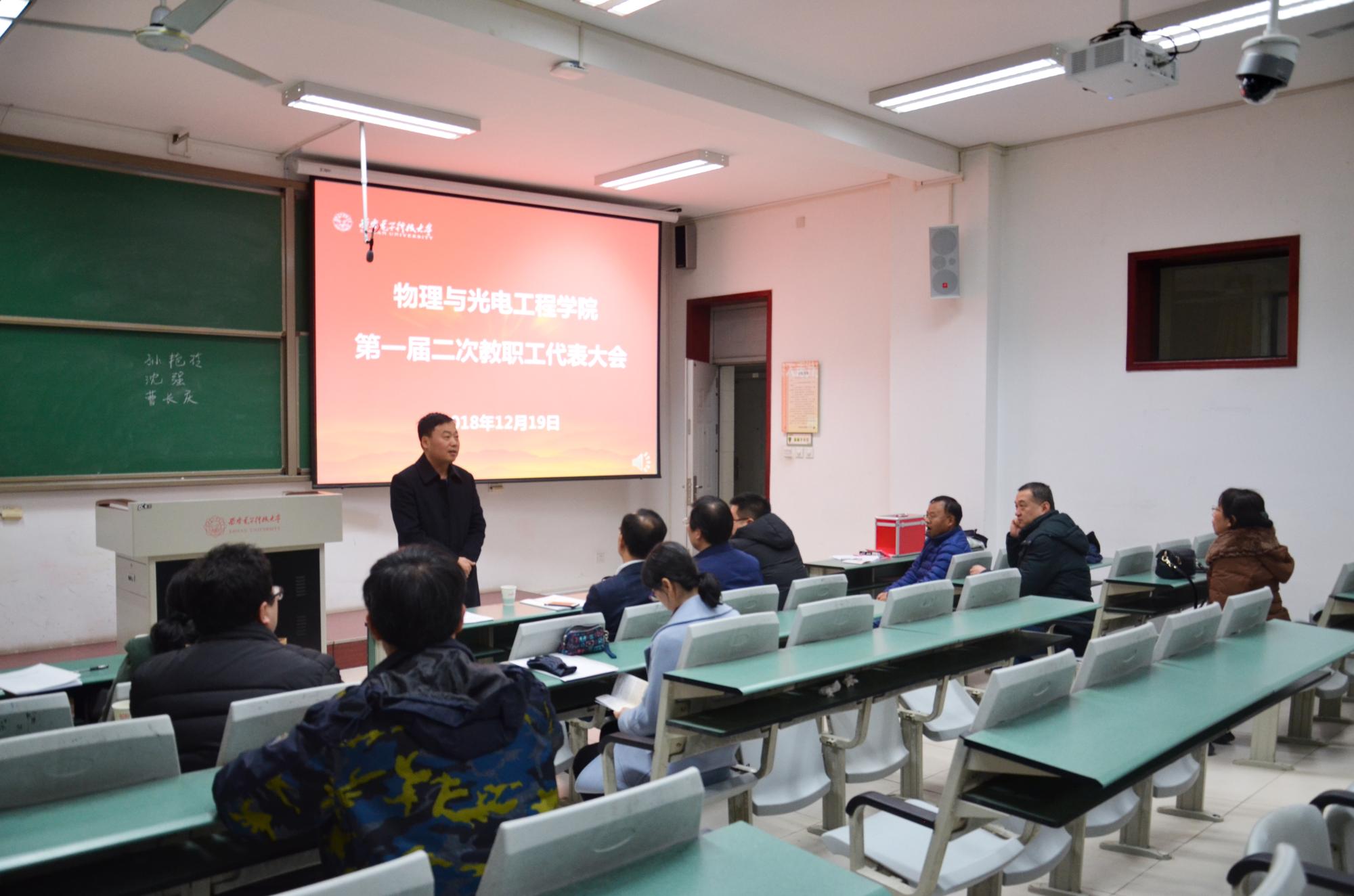 (通讯员:姚娇)12月19日晚,物理与sunbet申搏第一届第二次教职工代表大会暨工会会员代表大会在西大楼106教室隆重召开,会议选举产生了公司出席公司第六届教职工代表大会暨工会会员代表大会的代表。副董事长高新波、校扶贫办主任沈强、公司领导班子等47位教代会代表参加了会议。大会由公司党委副书记林波主持。