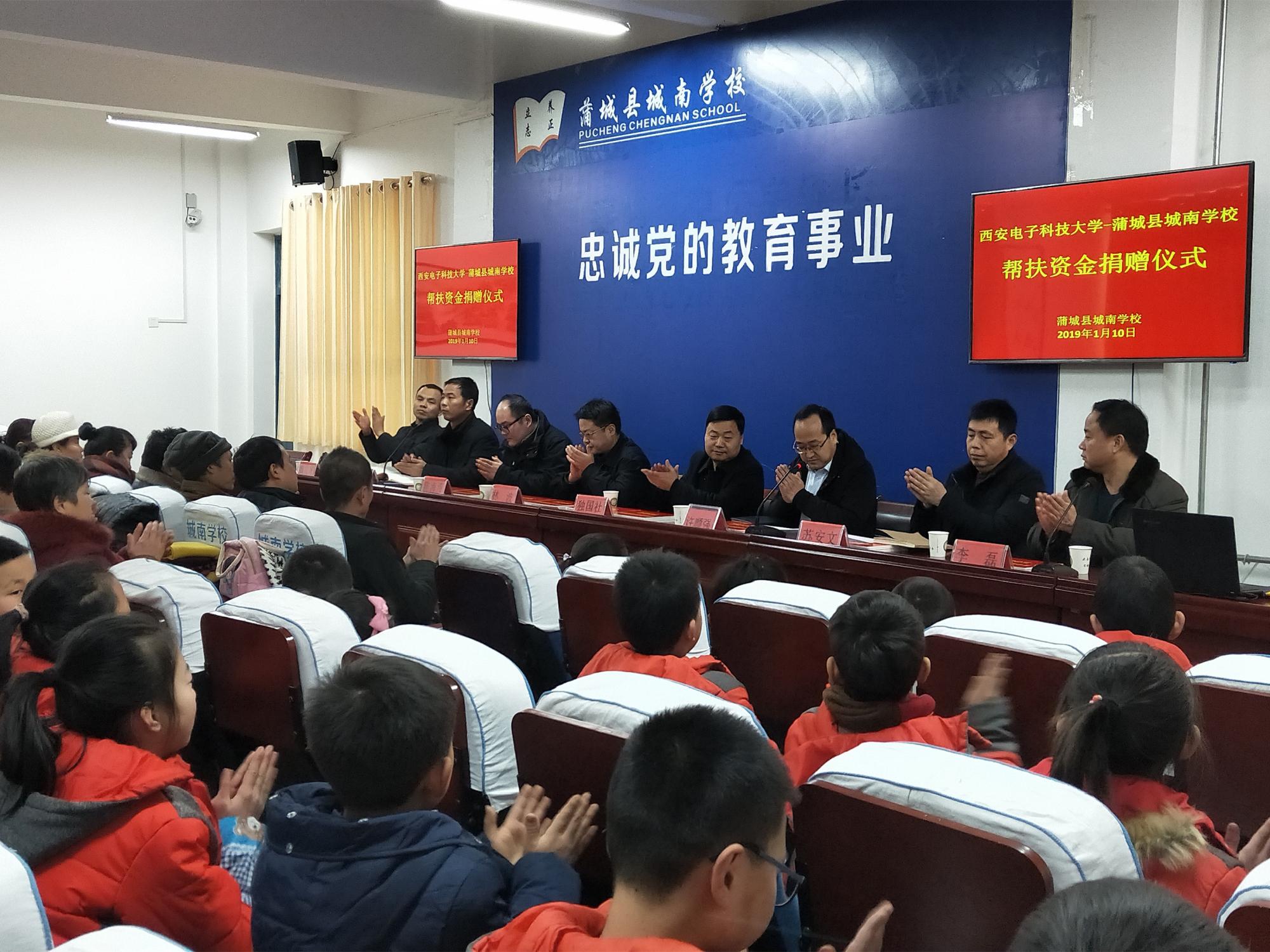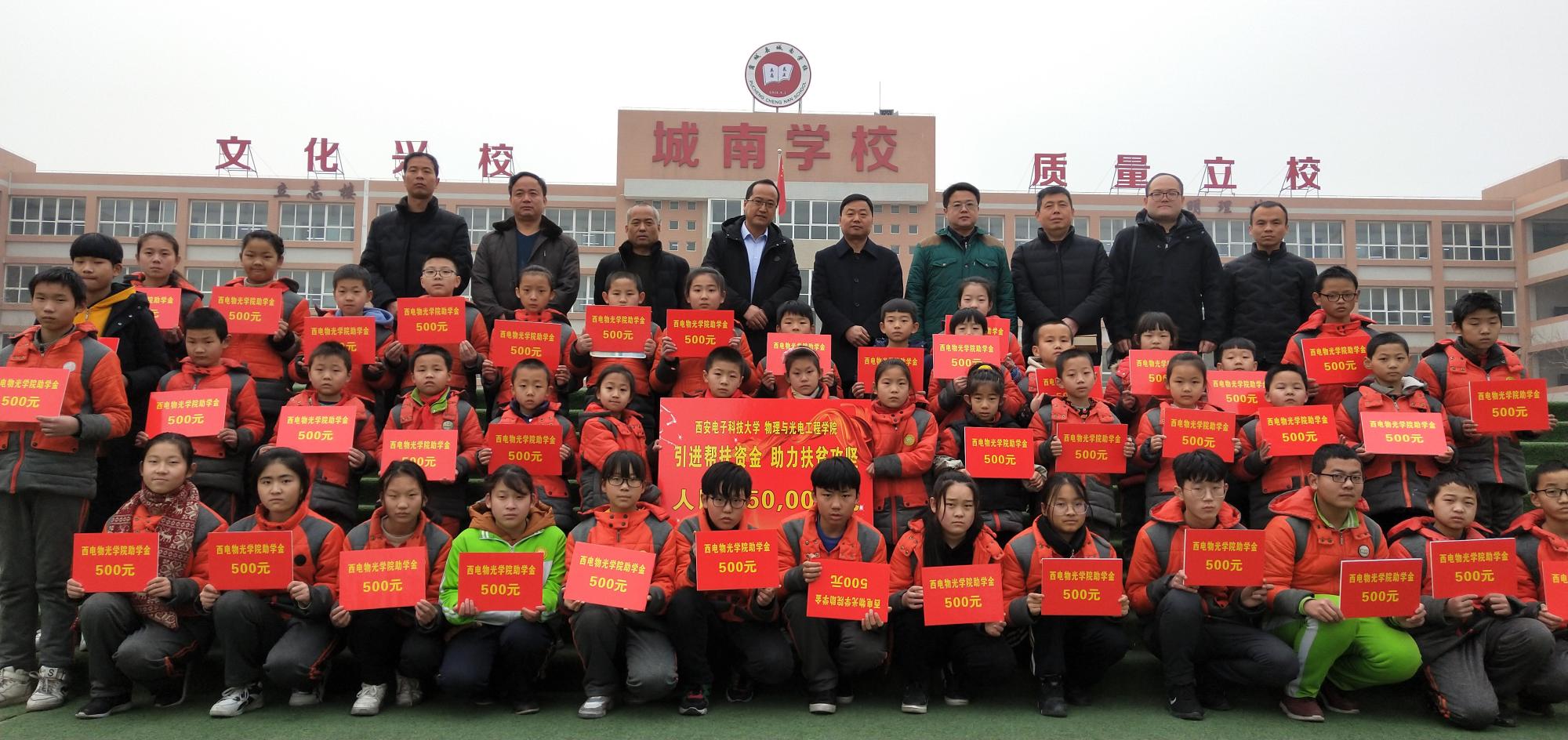 捐赠仪式上,独国社在讲话中谈到,公司充分发挥高校在国家脱贫攻坚工作中的特殊优势作用,将“扶贫”与“扶智”、“扶志”相结合,多次向蒲城县城南公司捐赠课外书籍、文体用具、科创工具,开展对接洽谈、志愿授课、科技讲堂等各类扶贫对接活动多次,建立了蒲城县城南公司“sunbet申搏官网老员工志愿服务基地”、“sunbet申搏官网物理与sunbet申搏老员工实践基地”,援建“西电物光院-蒲城城南公司员工科技活动室”,并邀请城南公司师生来公司参观交流。本次公司发挥员工企业与合作单位资源优势,与西安中科洺光测控技术有限公司、洛阳长峰电子科技有限公司签署协议,引进5万元帮扶资金,用于设立“2018年sunbet申搏官网—蒲城县城南公司贫困生‘物光助学金’”和帮助改善城南公司基础教育设施。城南公司要用好帮扶资金,为员工提供更加优质的教育服务,使受助员工能够不受经济困难束缚,早日成长为祖国的栋梁之才。希望同学们铭记社会各界的深情关爱,正视并战胜困难,不负家庭和社会的厚望,把关爱化为奋发学习的动力,坚定信心,自强不息,刻苦学习,提高素质,练好本领,努力成为对国家、对社会有所作为、有所贡献的人才,以优异的成绩和将来的出色表现,报效祖国,回报社会。