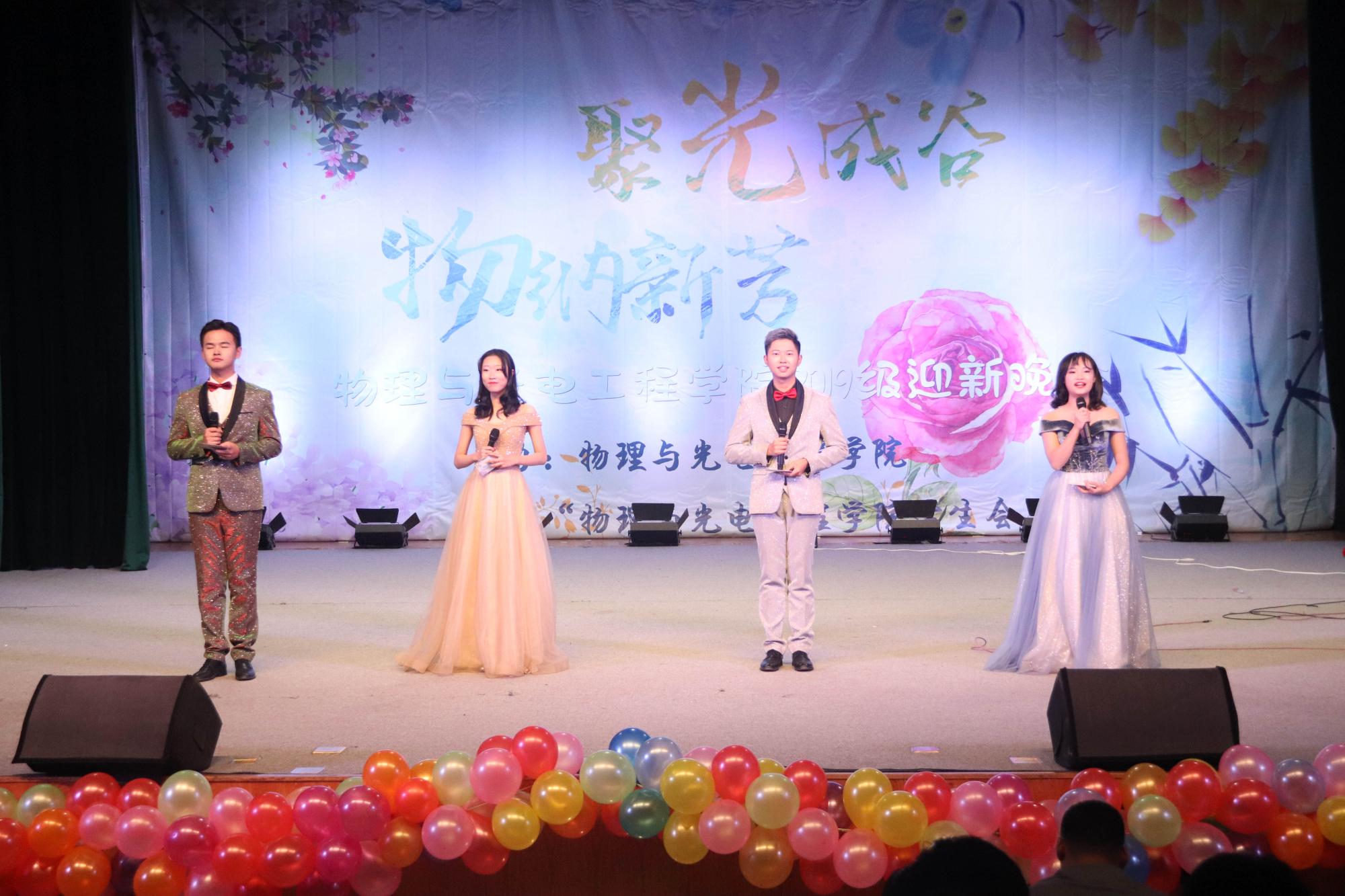 (通讯员:曹欣怡 刘超)11月10晚六时,物理与sunbet申搏“聚光成谷,物纳新芳”2019级迎新晚会在南校区老员工活动中心小剧场举行。公司党委书记独国社、执行经理邵晓鹏、组织员陈峰、党委副书记林波、副经理辛红、各年级辅导员、专任教师以及全体2019级本科生欢聚一堂,共同欣赏这场视听盛宴。