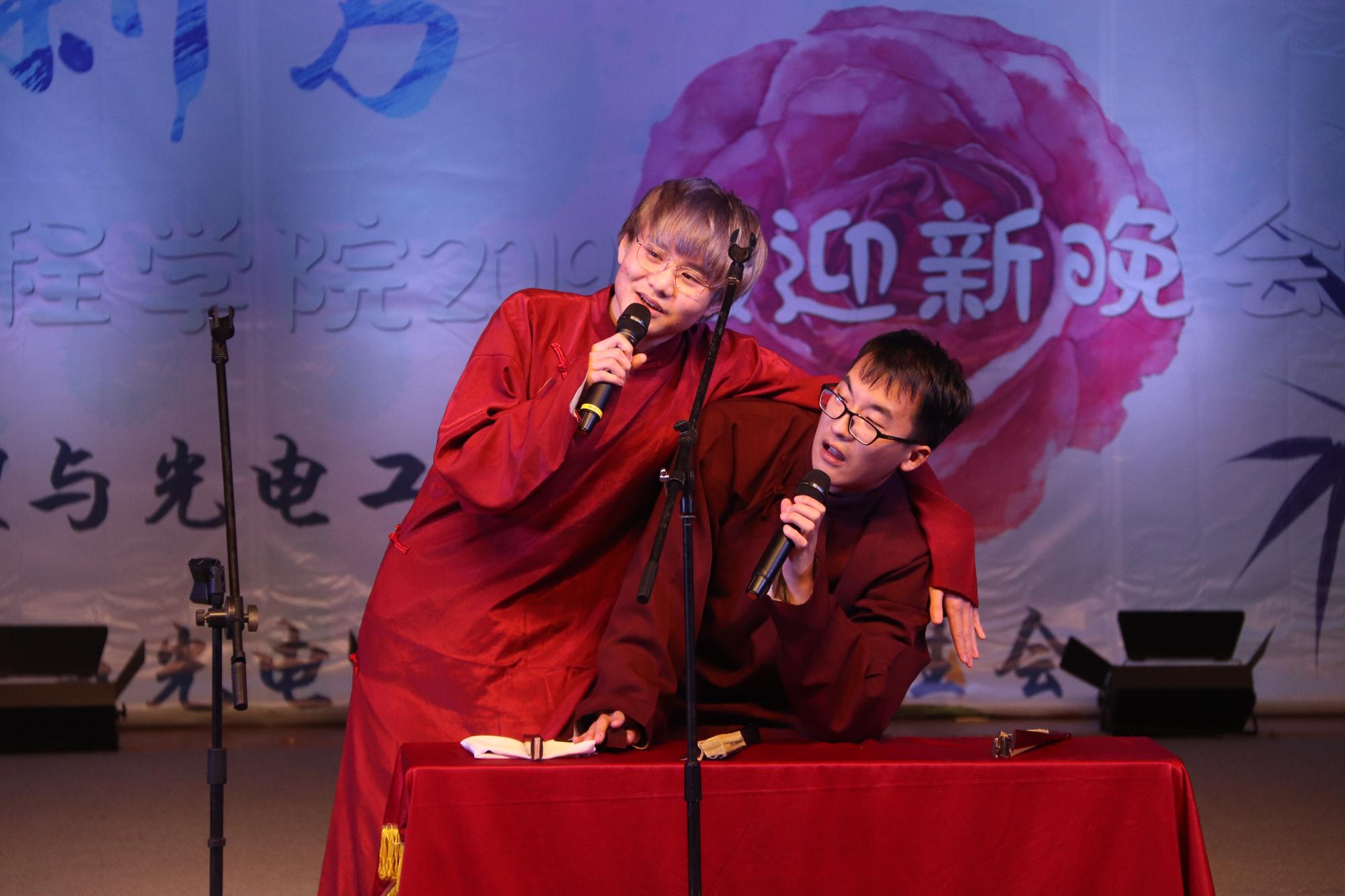 紧接着,郑浩楠同学一首《光年之外》将观众们带入晚会的欢乐气氛;员工会文艺部为同学们带来了原创光影剧《光影少年》,用肢体与光影的绝妙配合展现了新学期专属于新生的西电记忆:从独自踏上火车的紧张、告别时的泪水、初到校园的激动以及认识新朋友的欣喜等;口琴和手风琴合奏的《未闻花名》轻柔舒缓,令人沉醉;辅导员王晨辉、韩金虎现场抽取了幸运观众并为新生送上了祝福,希望同学们在美丽的sunbet申搏官网能够不负韶华、学有所成;抽奖环节过后,晚会继续进行。介四相声社带来的相声《我要招新》令现场观众捧腹大笑,欢笑声不绝于耳;B-force街舞社带来的舞蹈《快乐黑怕》,用明快的节奏带我们领略了协调的美感与团队的力量;新生同学展现了自己的风采,带来的歌曲串烧娓娓动听。在此之后又到了紧张刺激的游戏环节,在场观众自发上台参与游戏《谁是卧底》,大家斗智斗勇、绞尽脑汁,参与互动的同学们均领取到了精致的小礼品。