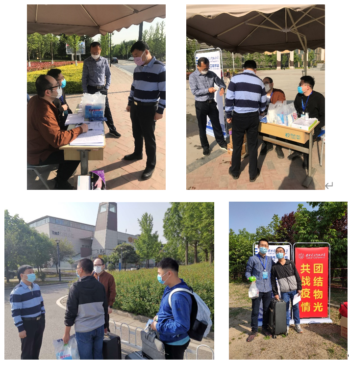 按照公司返校方案,公司分别于校东门和北门设置两个返校接待点。27日一大早,公司党委书记独国社、执行经理邵晓鹏、党委副书记林波便来到校东门公司接待点查看相关物资准备和接待情况。独国社向接待辅导员询问了当日要返校的员工的总体情况并就员工返校后的具体安排管理进行了了解。邵晓鹏查看了公司给返校员工准备的物资,现场测验了红外测温仪的测温效果。随后他们又来到校北门的接待点,正巧碰到一位从湖南省张家界市来的电子科学与技术专业员工龚辉,独国社向他详细询问了返程路途中的情况,并告诉他返校后在公司遇到任何问题及时跟辅导员联系,公司会尽力安排好大家的衣食住行,为大家返校后的生活和学习提供坚实保障。