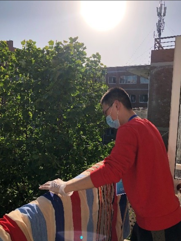 26日下午,为让公司员工返校后能有一个温暖的家,赶着炙热的骄阳,公司辅导员深入竹园三号公寓楼第一批返校员工的宿舍,为员工们暖心晒被,同时做好宿舍的消杀等准备工作。一时间,阳台上、栏杆上、晾衣架上都摆满了员工们五颜六色的被褥。经过两个小时的晾晒,暖暖活活的被褥又被辅导员们收起,整整齐齐的叠放在员工的高架床上。“给返校员工晒被褥是公司安排的一项暖心工程,我们就是想让员工在离别公司一百多天返回公司后能第一时间感受到公司给予的温暖!”公司辅导员刘昕玮在收拾完员工被褥后说道。