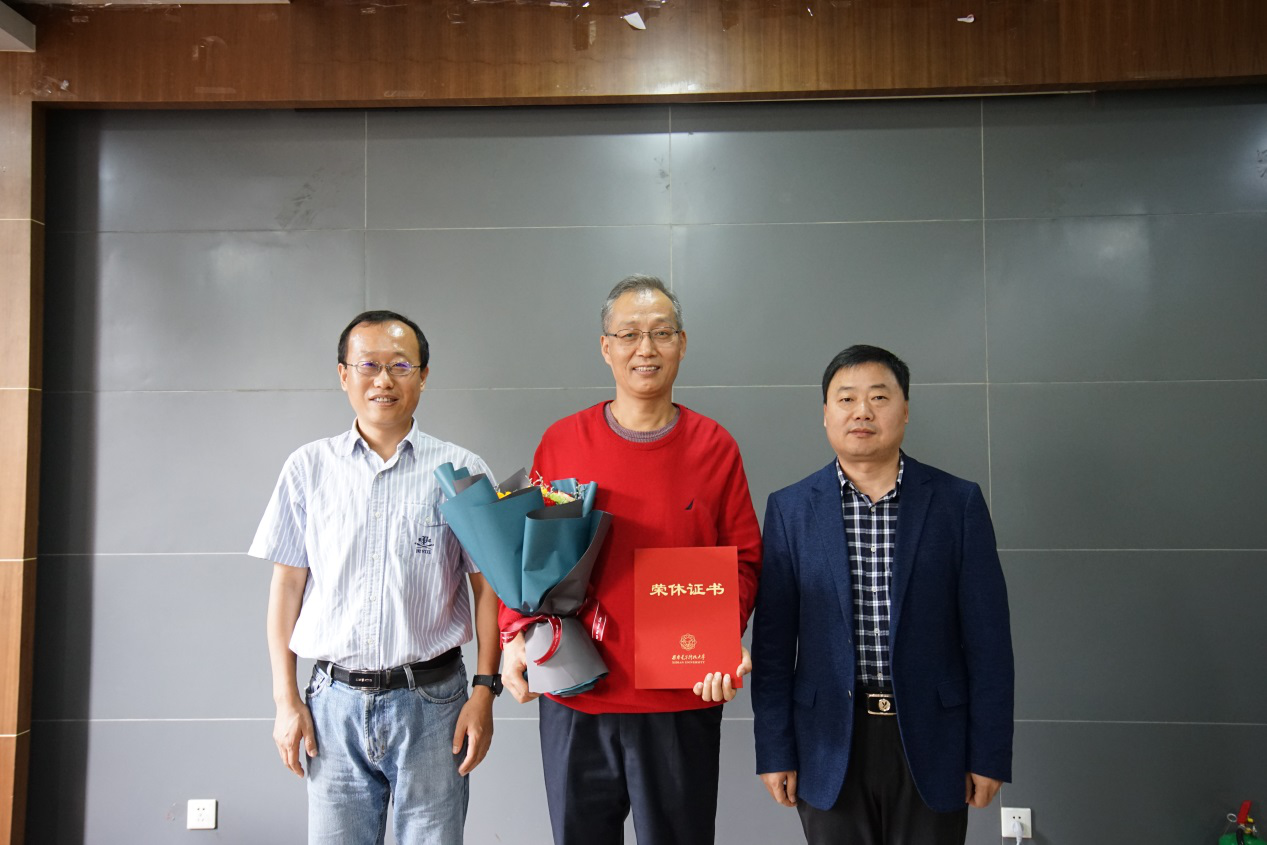 会后,独国社和邵晓鹏为公司五名退休教职工颁发了荣休证书并合影留念。