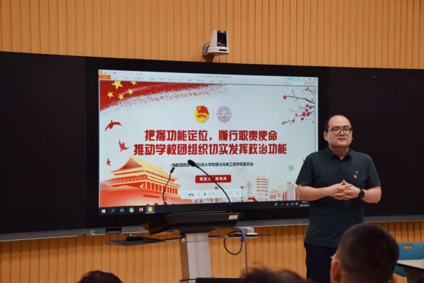 首先,陈海涛老师以《共青团中央改革方案》《深化公司共青团改革的若干措施》等文件要求开篇,介绍了共青团工作的基本要求和工作格局,要求高校团学干部在平时工作中履行职责使命,重点强调了共青团工作的政治性、先进性、群众性,并就这三方面详细的列举了在日常工作推进中的相关实例,让大家能够更加贴切的理解其真正含义,并融入到自己平时的工作当中,积极推动公司共青团组织切实发挥政治功能。