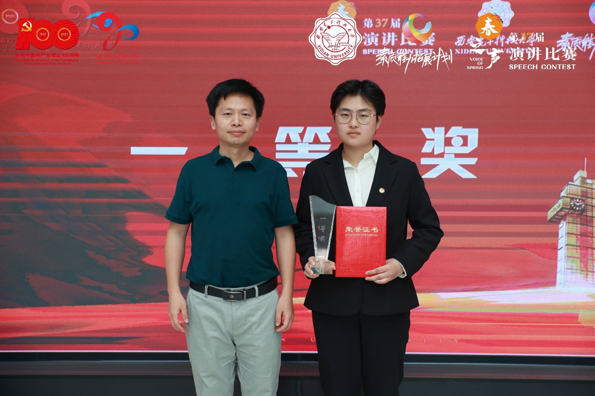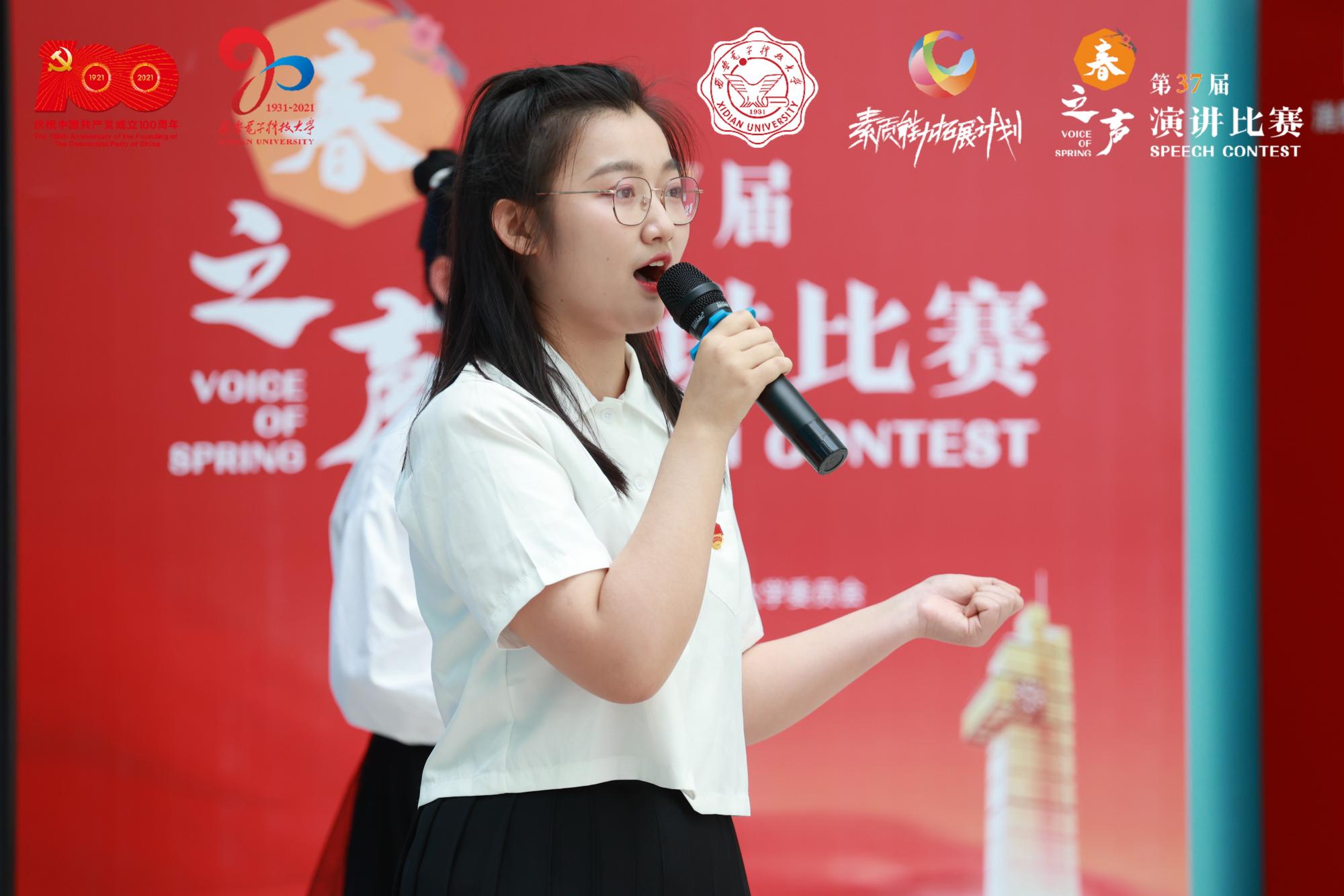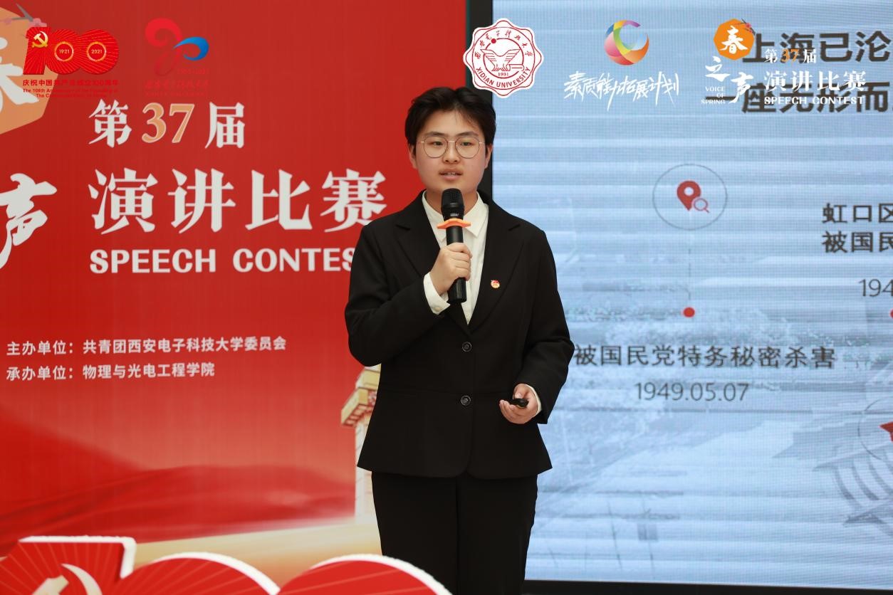 常舒婷同学带来的演讲《红色电波里的峥嵘岁月》,带我们回望了先辈们的峥嵘岁月,让我们看到新时代西电人,是青春的、向上的、朝气蓬勃的,我们应当怀揣梦想,充满斗志,点燃激情,继承红色基因、勇担时代重任,为祖国建设与社会发展贡献青春力量。