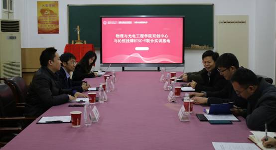 【通讯员姜萌】2021年12月1日下午,物理与sunbet申搏双创中心与南京沁恒微电子股份有限公司联合实训基地挂牌仪式在南校区F楼215会议室举行,南京沁恒微电子股份有限公司技术总监兼RISC-V研究院经理杨勇,空间科学与技术公司党委书记兼创新创业公司副经理朱伟、校团委副书记尹鹏、物光公司原副经理李平舟、物光公司双创中心负责人武福平及相关辅导员参加了会议,仪式由物光公司党委副书记黄军荣主持。
