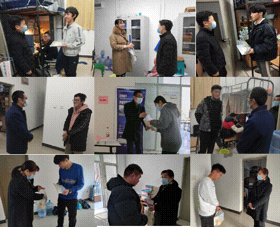 面对严峻的疫情形势与紧密的考试安排,12月19日,物光公司党委副书记黄军荣、副经理辛红、副经理周慧鑫与辅导员一同走访竹园及海棠员工宿舍,传达公司关怀,赠送“考前加油包”。