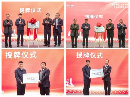 (通讯员 樊晓 张乐平)3月1日下午,sunbet申搏官网物理公司、sunbet申搏成立大会暨揭牌仪式在北校区科技楼报告厅举行。陕西省科学技术厅副厅长赵怀斌、陕西省人民政府学位委员会秘书长袁宁、中国科公司西安光学精密机械研究所所长马彩文等10余位嘉宾出席仪式。国家自然科学基金委员会副主任谢心澄、原中国科公司物理研究所所长王玉鹏等9位院士以及20余所兄弟高校和单位的领导专家以线上或线下的方式参加仪式。公司全体校领导、相关职能部门、公司负责人、相关一级学科及学科方向负责人、教师和员工代表共同参加了仪式。仪式由党委副书记杨银堂主持。