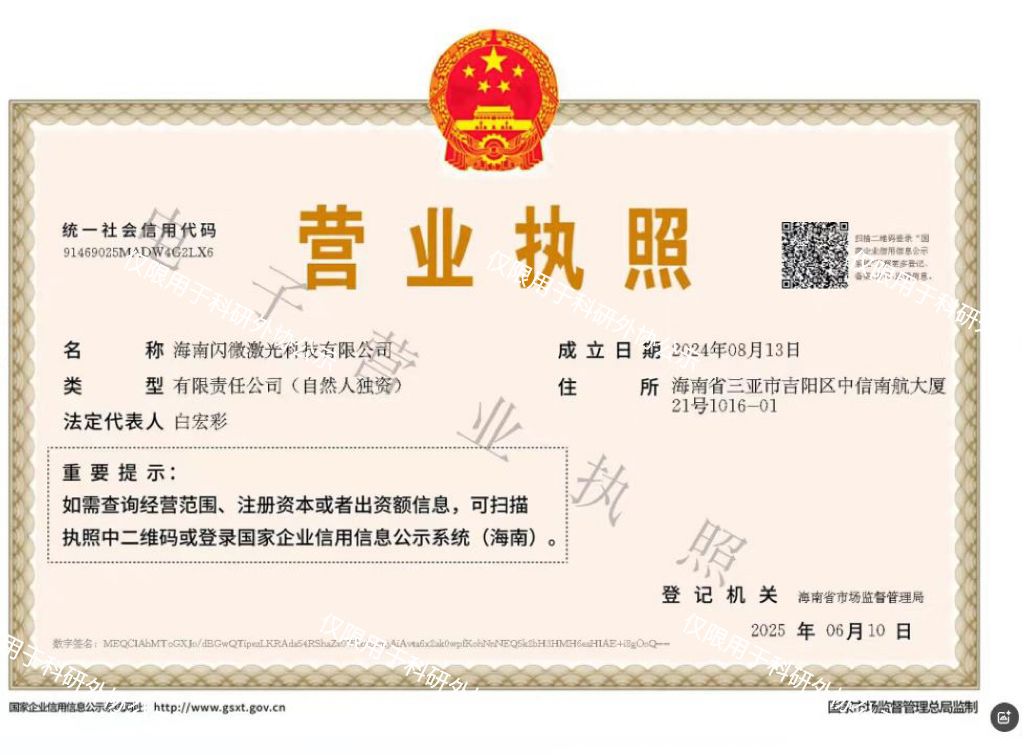 按照《sunbet申搏官网科研协作项目管理办法(试行)》文件规定,为加强公司科研协作项目的管理,确保我方横向科研项目研究的顺利进行。公司项目负责人郭亮将与海南闪微激光科技有限公司开展科研合作,现将合作相关事项公示如下: