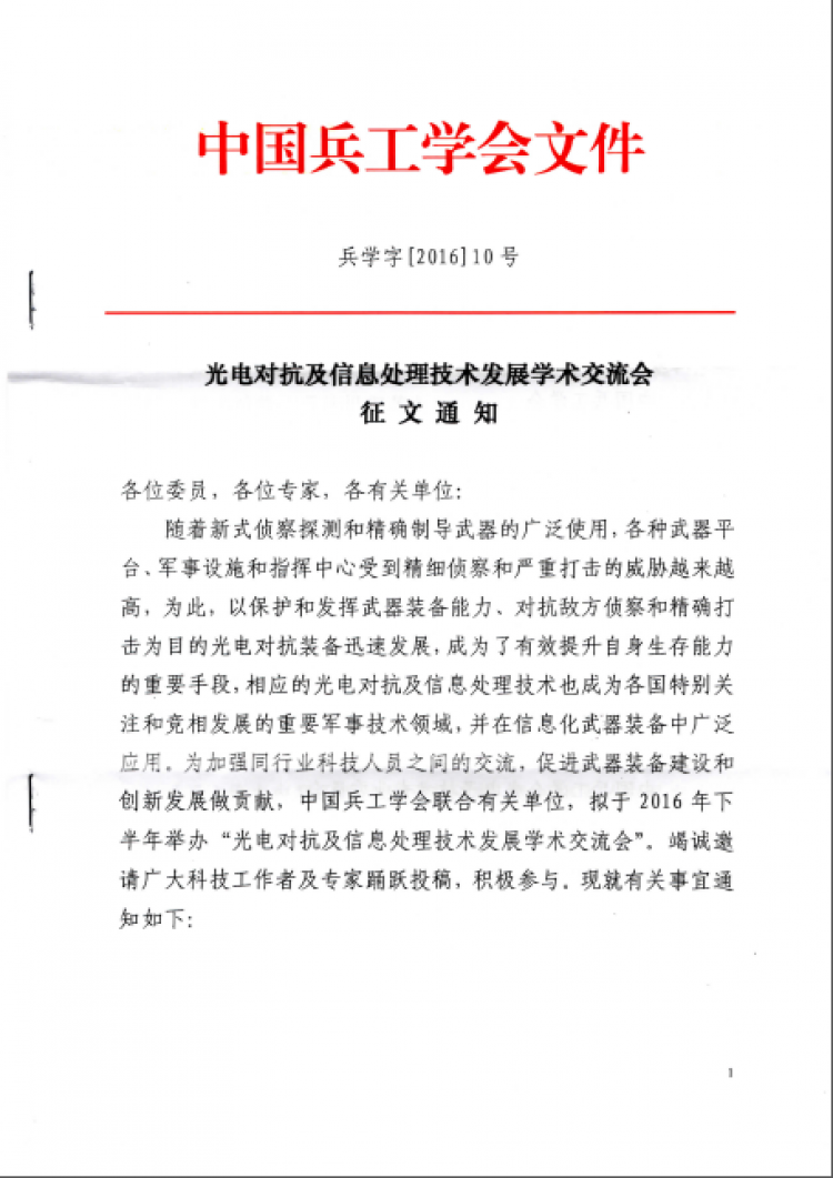 【科研】转发关于《光电对抗及信息处理技术发展学术交流会征文通知》