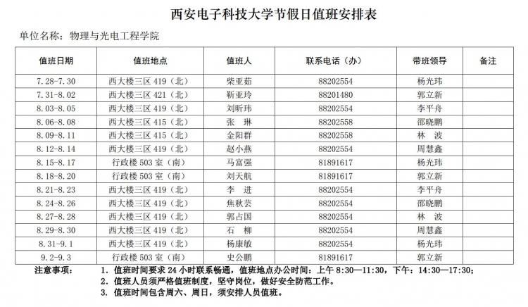 二、 假期值班安排
