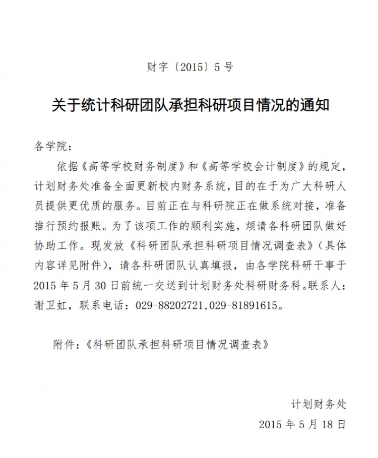 【科研】转发科研处关于统计科研团队承担科研项目情况的通知