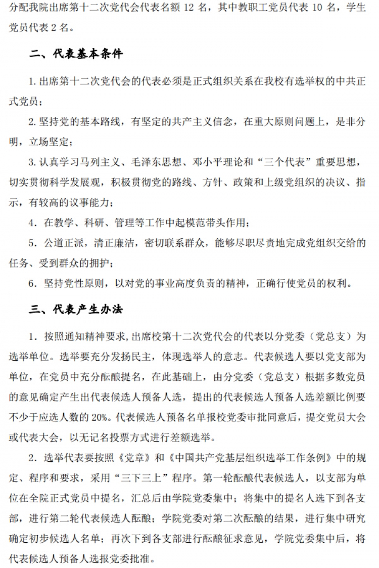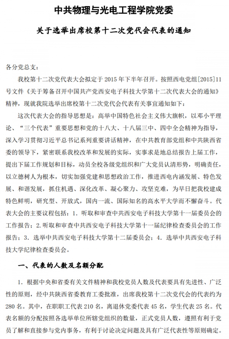 【党委】关于选举出席校第十二次党代会代表的通知