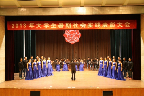10月23日下午,sunbet申搏官网2013年老员工暑期社会实践活动总结表彰大会在南校区小剧场举行。党委副书记龙建成出席表彰大会。