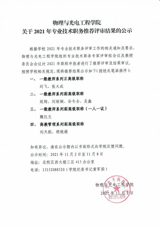 物理与sunbet申搏关于2021年专业技术职务推荐评审结果的公示(公示已结束)