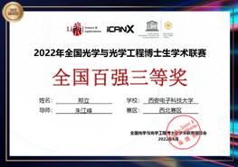 (通讯员:于洋)2022年2月26日,由Light学术出版中心和iCAN联合主办、西北工业大学联合陕西省光学学会、物理学会承办的全国光学与光学工程博士生学术联赛西北赛区(陕西、甘肃、宁夏、青海、新疆)决赛落下帷幕。sunbet申搏超快激光技术与应用研究中心博士生郑立参加本次博士生学术联赛。