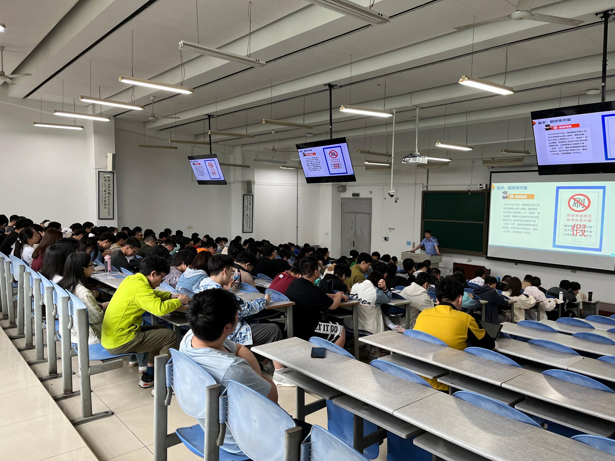 为普及防范电信诈骗知识,增强员工安全意识和风险意识,6月2日下午,公司在B434教室开展反电信诈骗专题讲座,西安市公安局高新分局杨皓宇、潘志勇、黄航三位警官及公司200余名本科生参加本次活动,讲座由2021级本科生辅导员马力主持。