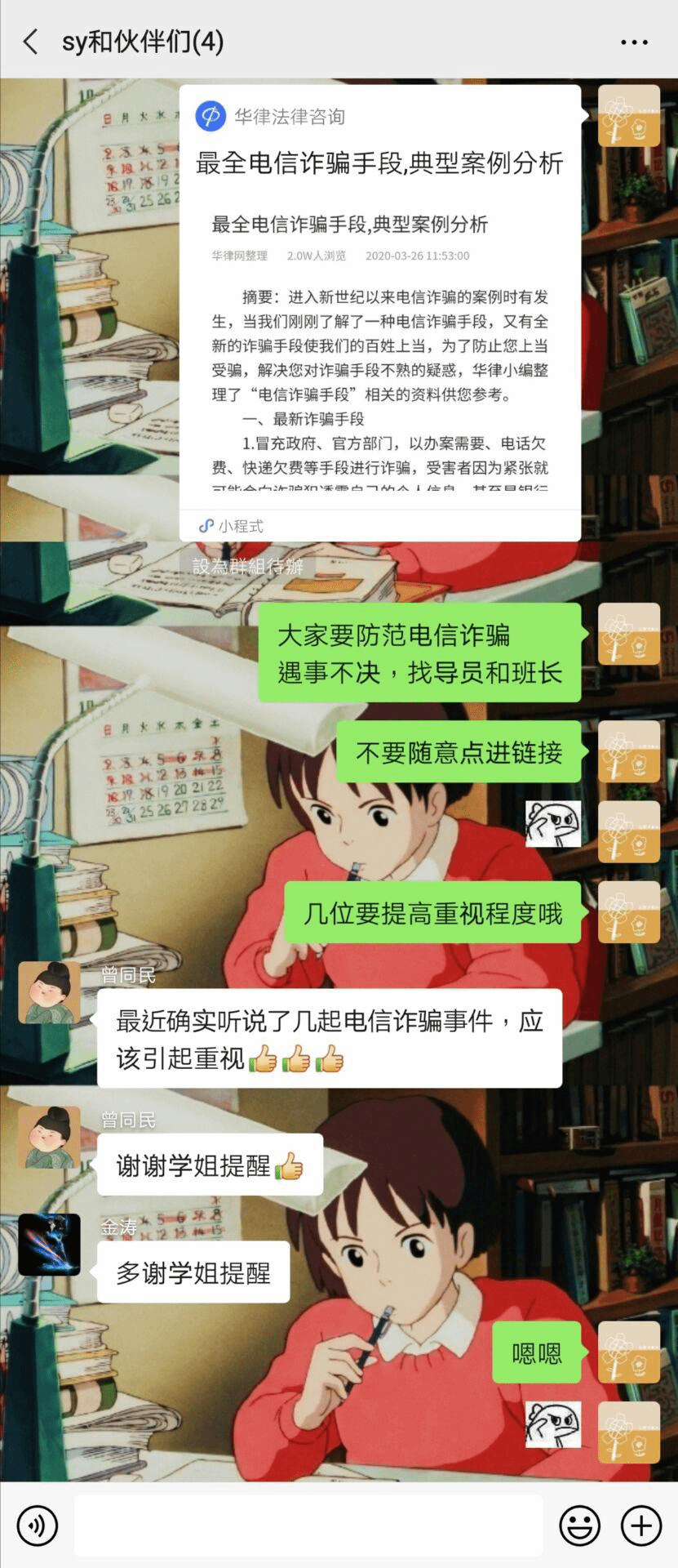 2020年9月17日,今天进行了领航员的对接活动,此前有在微信里线上聊天,我和几位学弟拉了一个微信群,大家都很热情,乐于提问并乐于分享。作为领航学姐,我特别希望他们三人能够尽快适应老员工活,找到合适自己的生活节奏,投入于学业,热心于社团活动,然后可以从心底觉得:西电是最正确的选择!