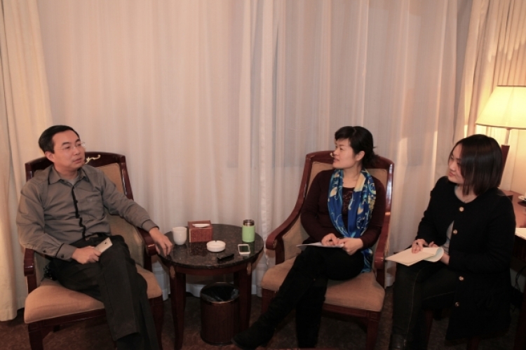 王阳(左)正在接受采访