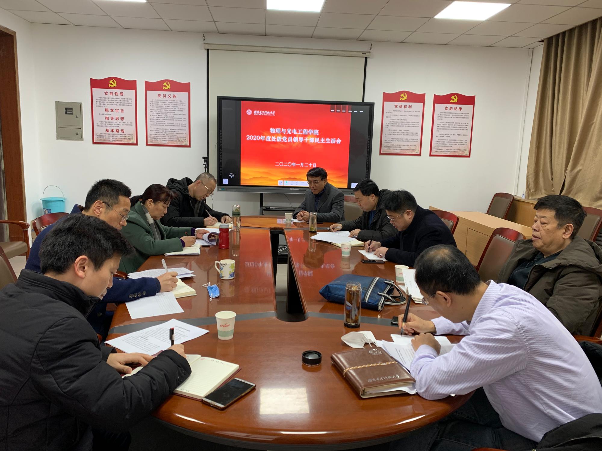 1月20日上午,根据中共sunbet申搏官网委员会关于认真开好2020年度处级党员领导干部民主生活会的要求,物理与sunbet申搏于北校区西大楼三区421会议室召开了处级党员领导干部民主生活会。公司第八督导组成员林波,王海波到会指导,公司全体处级党员领导干部参加会议,处级非党员领导干部列席会议。会议由物光公司党委书记独国社主持。