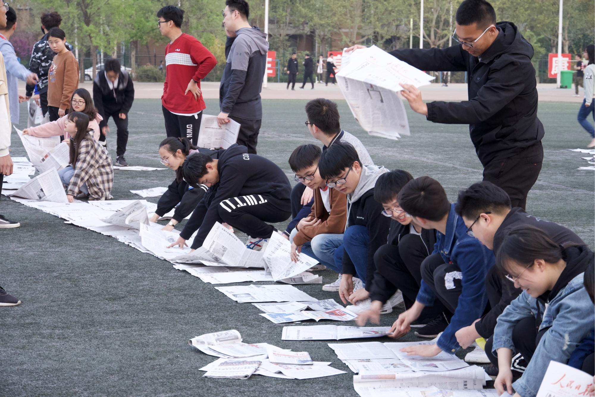随后,为促进学员相互认识了解,强化团体建设和集体意识,组织部工作人员带领学员分成四组,进行了一系列有趣的破冰活动。具体分为报纸带竞速和穿越呼啦圈两个项目。报纸带竞速为各支队伍站在制作好的报纸履带内行进。穿越呼啦圈则为队员通过身体配合将呼啦圈从右臂套至左臂进而接力传送。现场愉快激烈,学员们积极协作,收获了友谊,凝聚力、归属感也得到了极大的提高。
