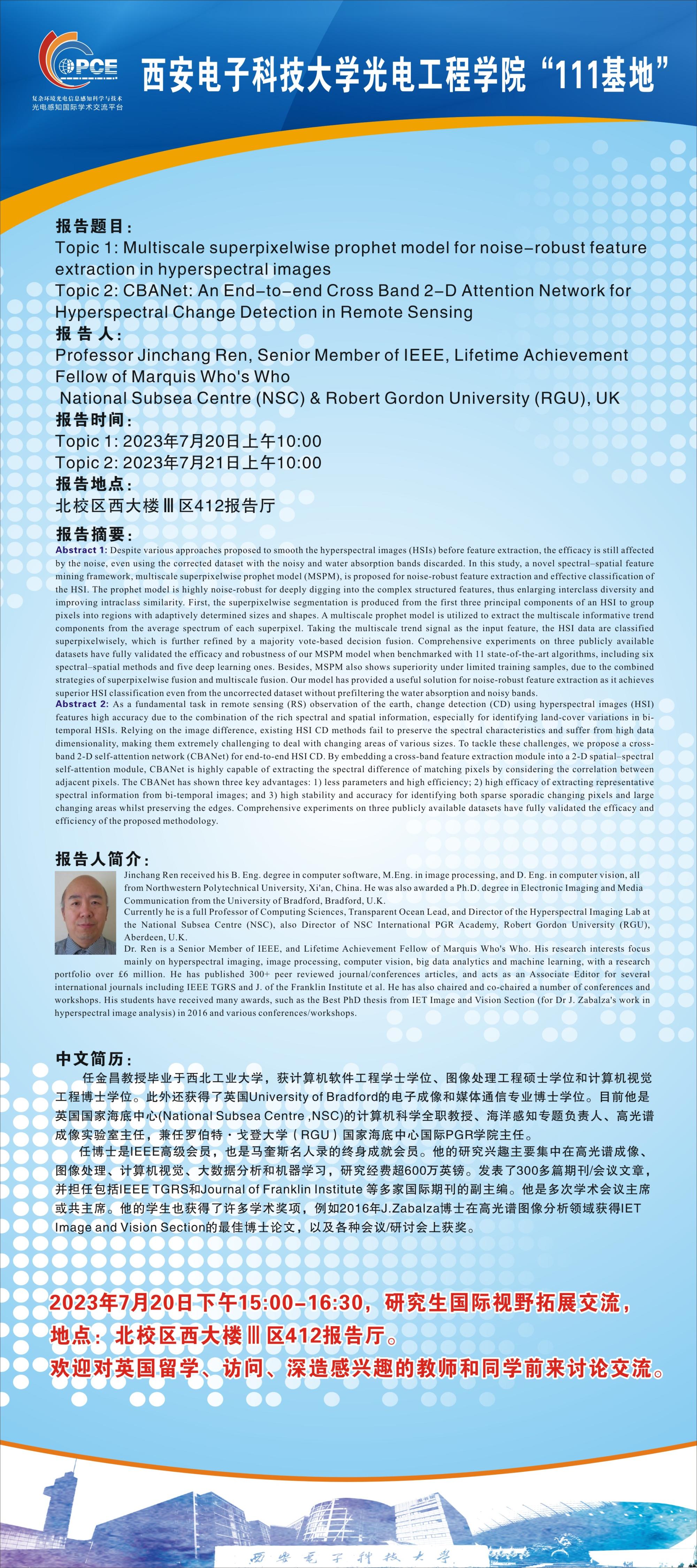报告人:Professor Jinchang Ren