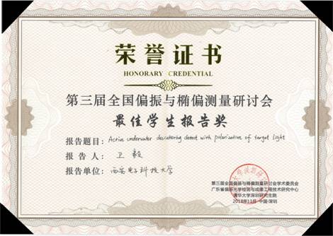 2018年11月11日至13日,公司青年教师刘飞博士及员工卫毅受邀参加清华大学深圳研究生院在深圳举办的第三届全国偏振与椭偏测量研讨会(简称CNPE2018)。并在大会期间做题为“水下偏振成像技术”的学术报告。参会人员合影刘飞博士在其报告中介绍了水下偏振成像技术及其应用前景,重点为高浑浊度水体中的水下主动偏振成像技术,利用波长选择原理降低水体散射对成像的影响,同时基于光学相关原理,有效利用水下场景信息的双域...